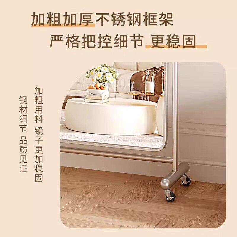 服装店可移动超白全身镜带轮子家用落地跳舞显瘦舞蹈镜穿衣玻璃