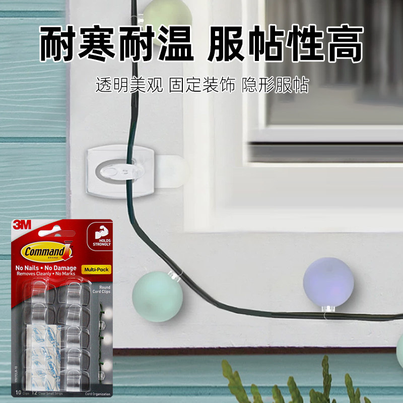 3M高曼装饰夹无痕隐形强力透明不伤墙免打孔免钉家居专用迷你挂钩
