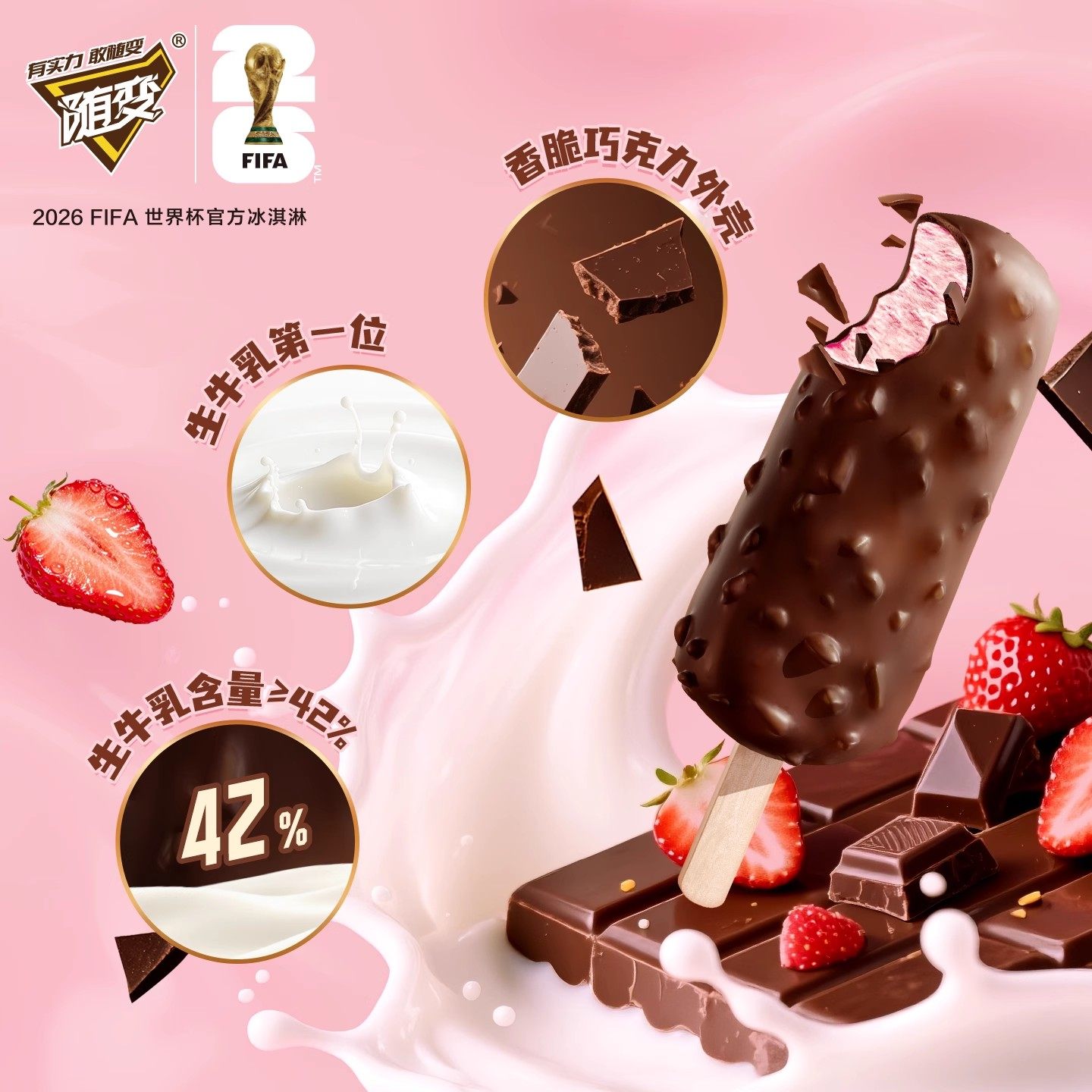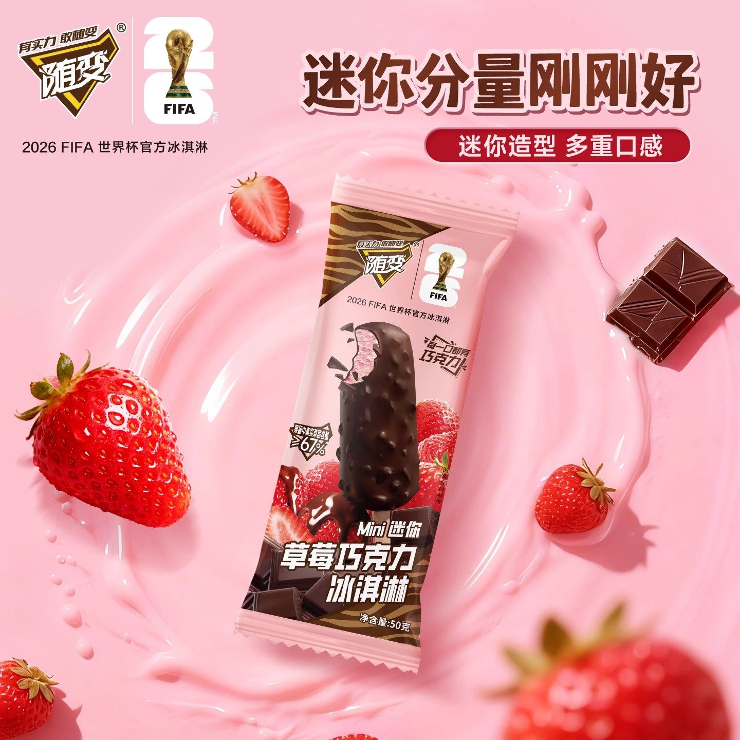 【新品】蒙牛随变迷你草莓50g巧克力冰淇淋