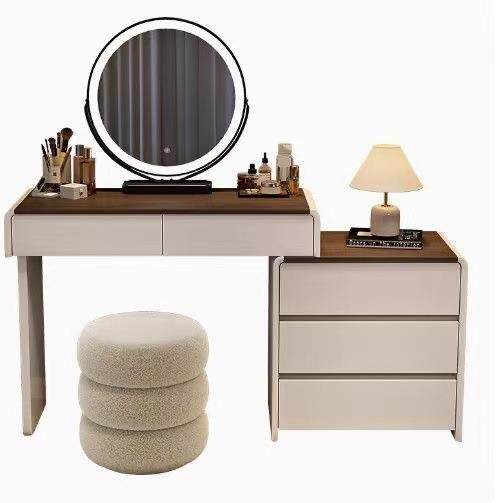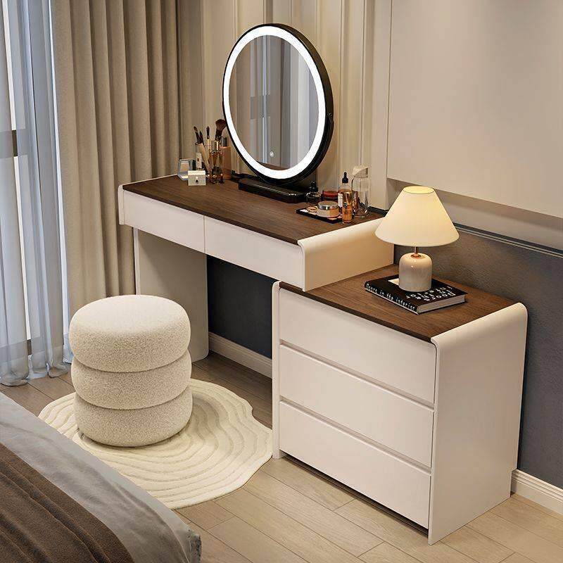 奶油风实木梳妆台胡桃色化妆台斗柜一体现代简约款化妆桌新款卧室