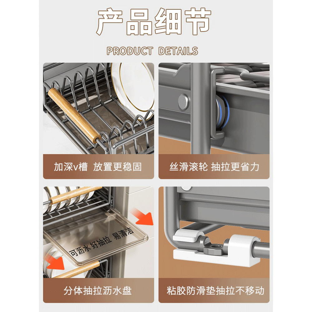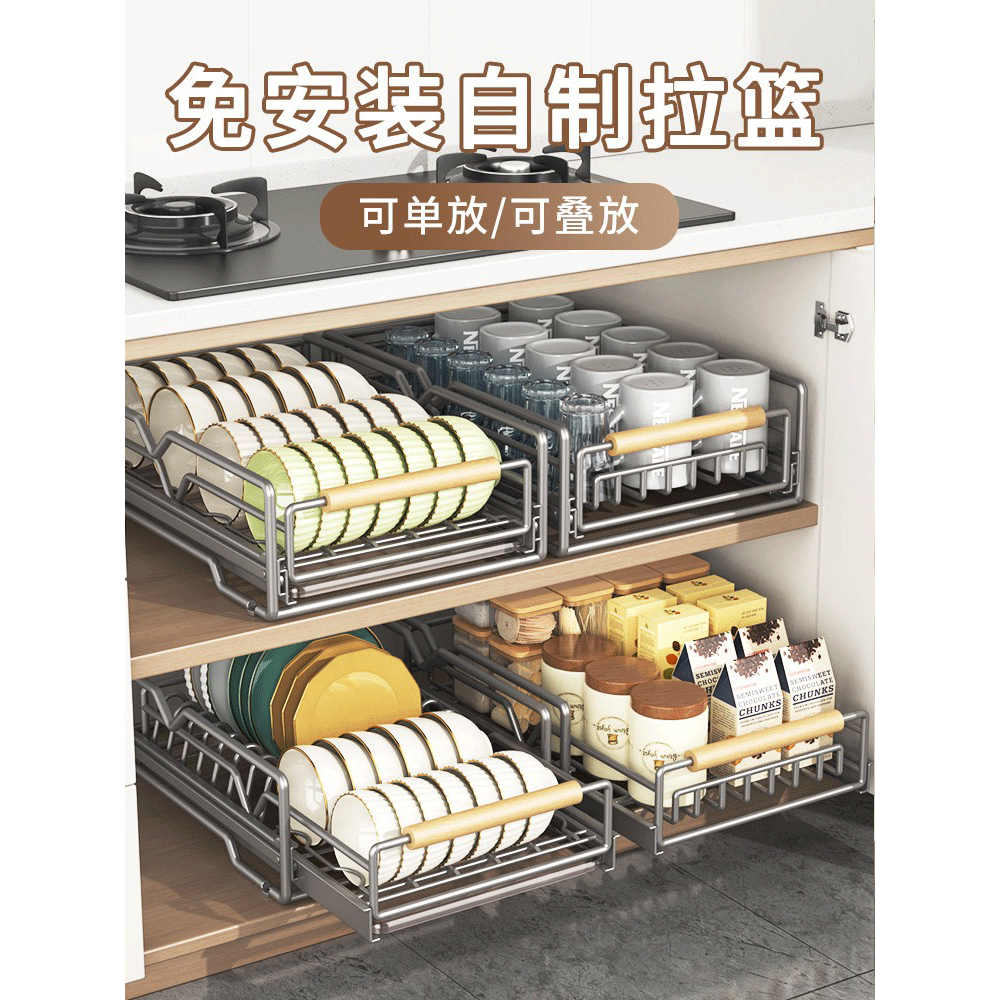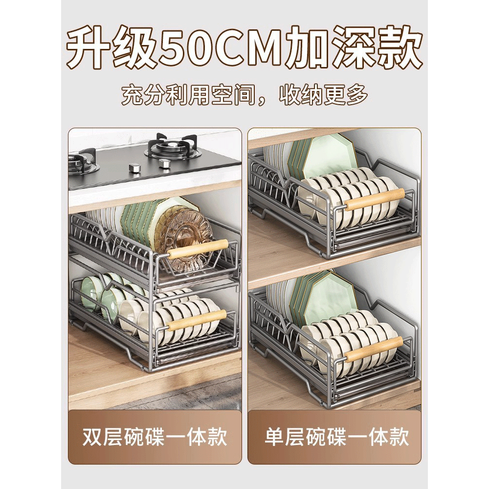 德国厨房碗碟收纳架橱柜内置物架抽屉式拉篮抽拉碗盘沥水架放碗架
