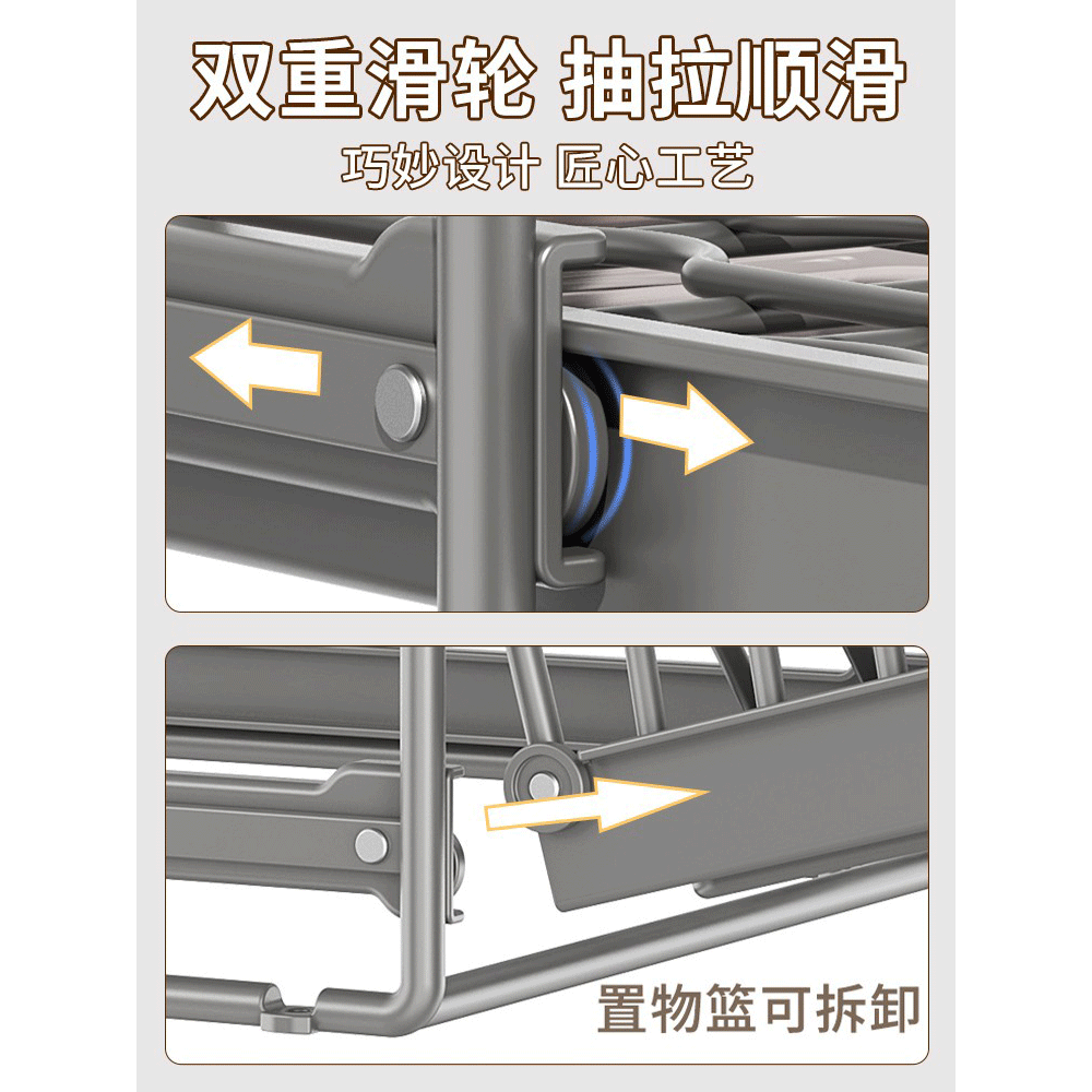 物鸣新款橱柜锅具收纳架锅架厨房置物架家用多功能下水槽下收纳架