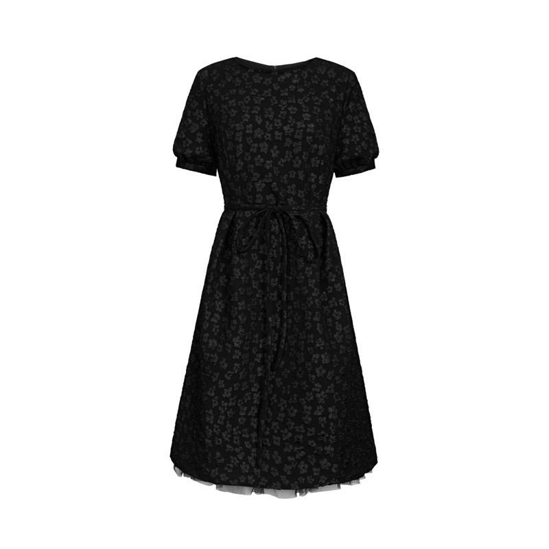 圆领连衣裙 收腰碎花 网纱拼接