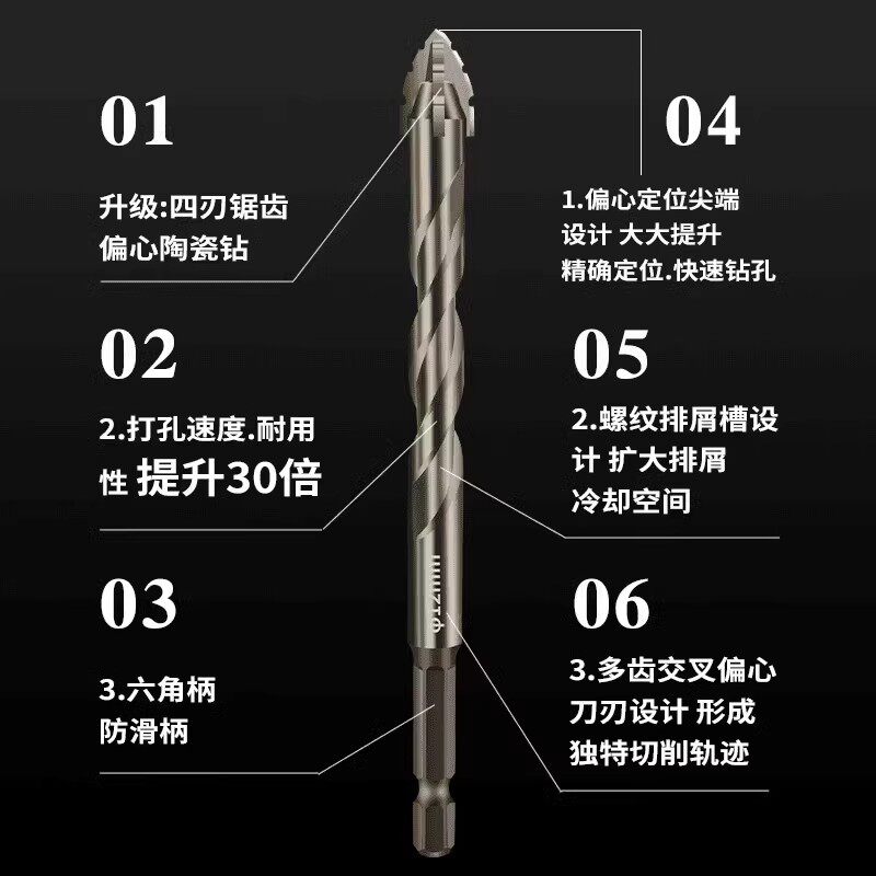 锋齿钻新款错位锯齿钨钢合金三角钻锋利耐磨家装干湿两用打孔钻头