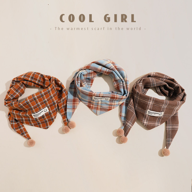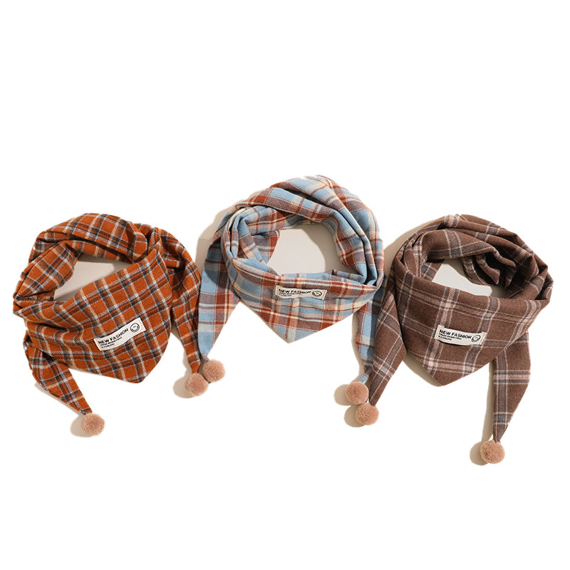 儿童围巾秋冬款保暖婴儿宝宝围脖丝巾男童女童三角巾披肩格子白色