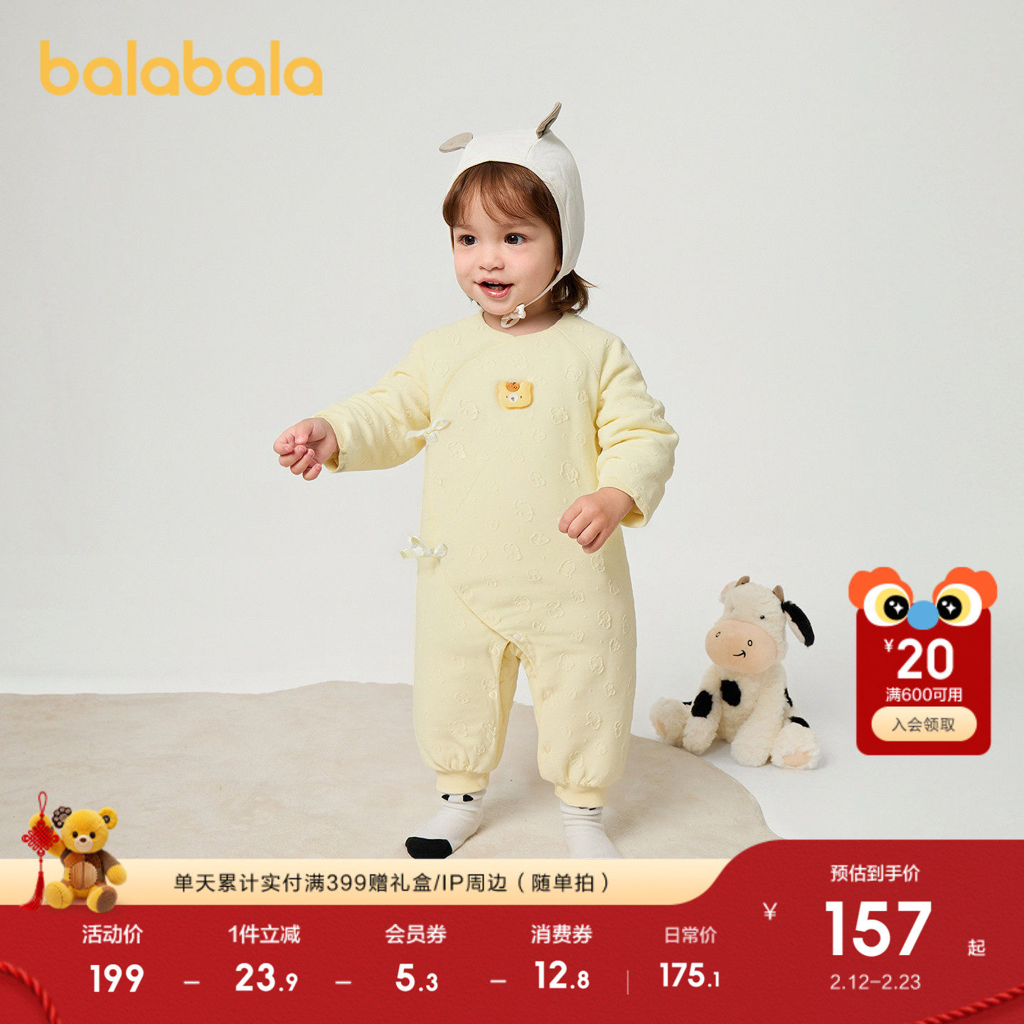 【商场同款】巴拉巴拉连体衣婴儿秋冬宝宝抱衣爬服2025新款舒适萌
