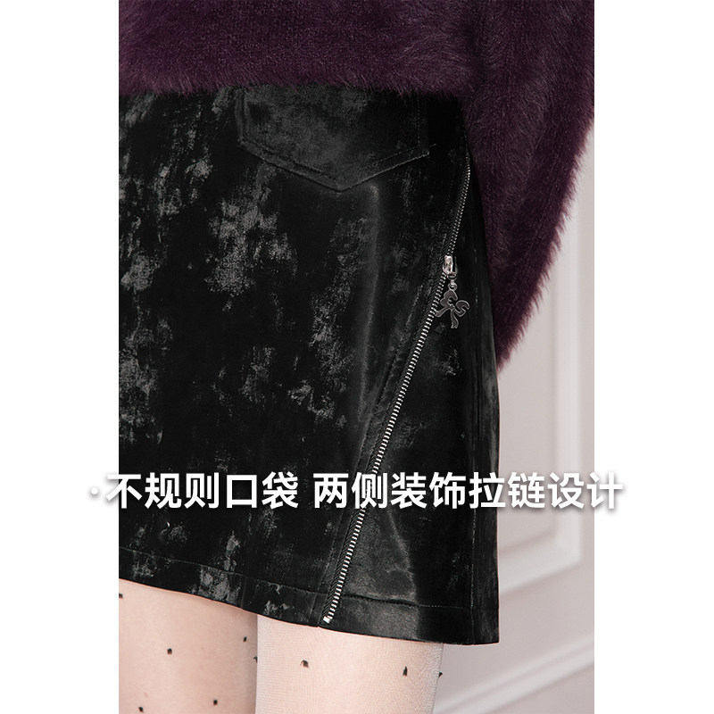 妖精的口袋黑色鎏光不规则半身裙女2026冬季新款高腰a字显瘦短裙