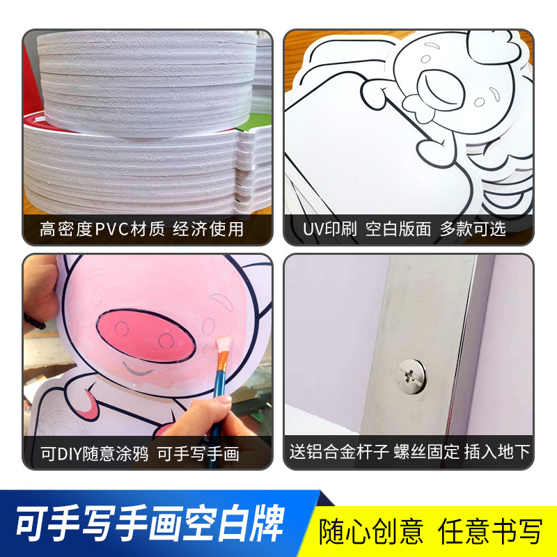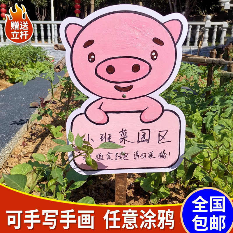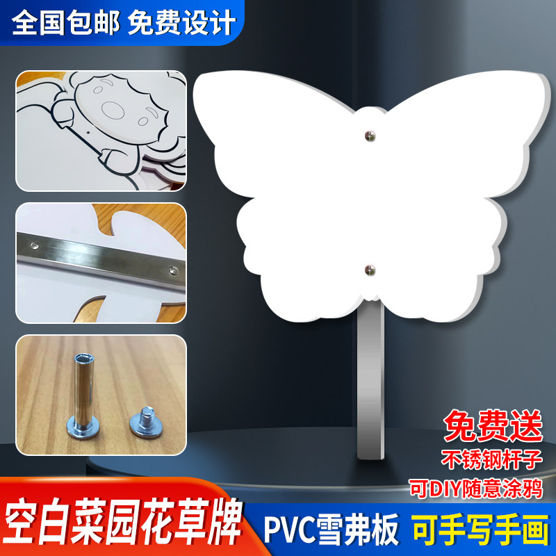 空白花草牌手工涂鸦DIY菜园牌可手写手画任意涂鸦幼儿园菜地牌种植区手绘插地提示牌PVC雪弗板定制