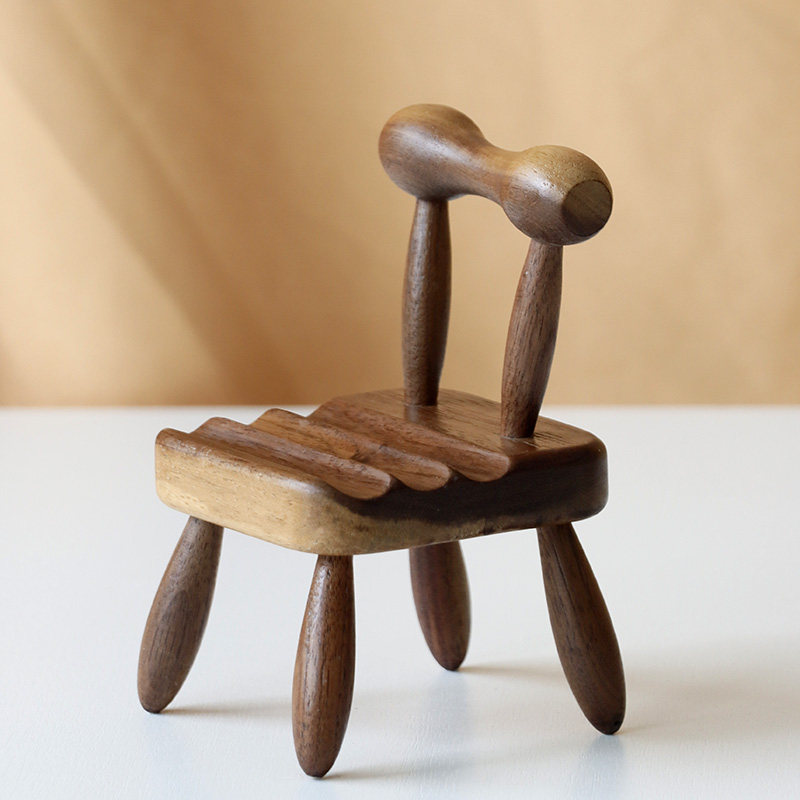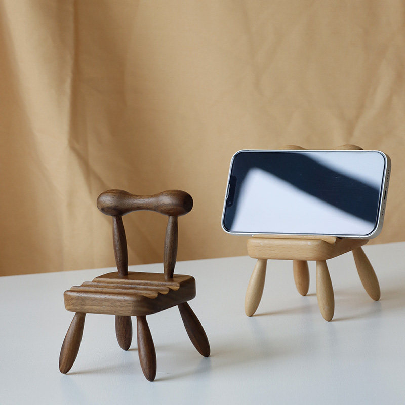 实木制小椅子手机支架桌面手机支架底座创意摆件小凳子手机支架