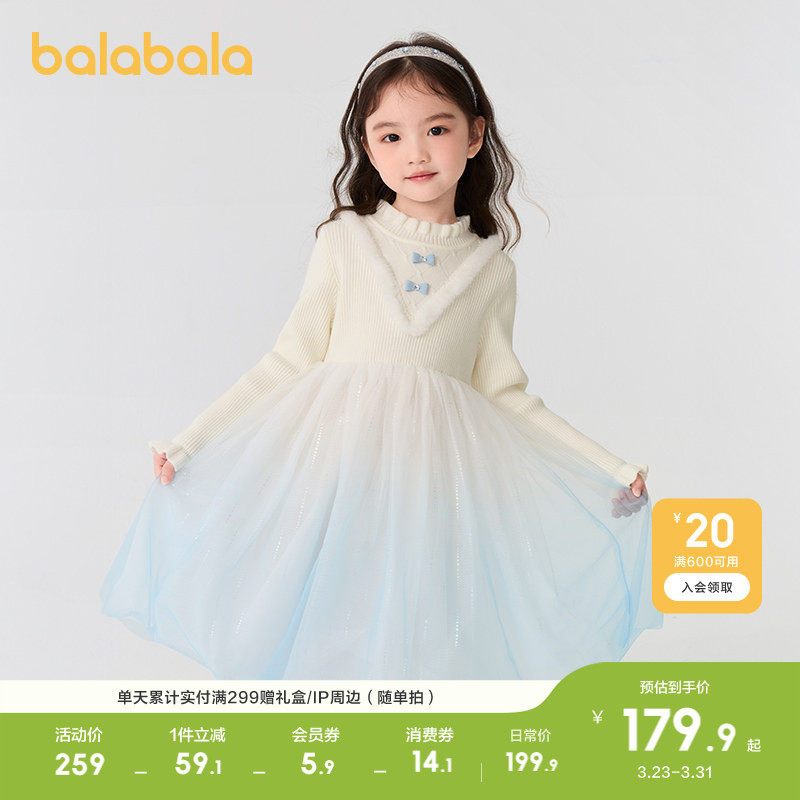 巴拉巴拉童装儿童连衣裙女童秋冬装公主裙渐变网纱裙针织拼接洋气