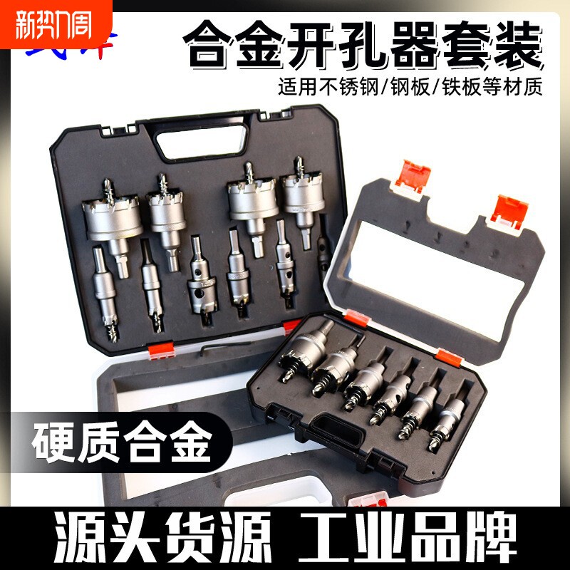 金属不锈钢开孔器套装硬质合金钻铁板打孔钻头铝合金扩孔6/10件套