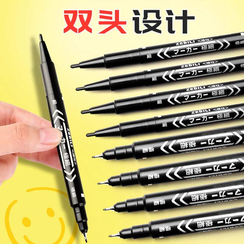 小双头油性记号笔勾线笔美术专用黑色细头不掉色防水防油瓷砖水性马克勾线笔小学生幼儿园儿童签到用粗细两头