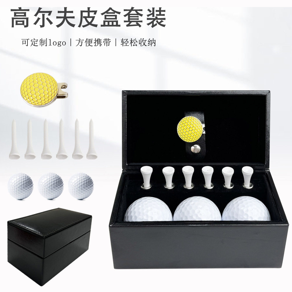 跨境货源高尔夫球叉帽夹套装高尔夫PU皮礼盒商务馈赠礼品盒收纳