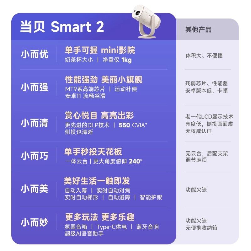 【政府补贴立减15%】当贝Smart2投影仪家用超高清轻薄便携智能投影机激光电视卧室2025新品移动家庭影院