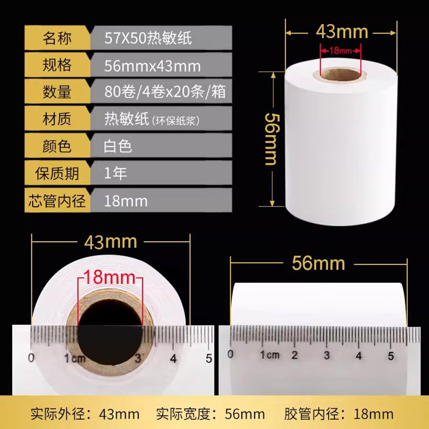 bsd57x50收银纸mm打印纸80超市美团x40x30外卖复印纸热敏纸百事达