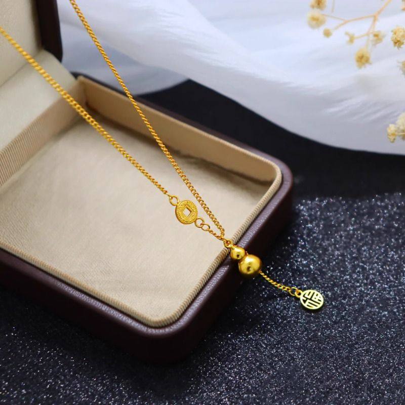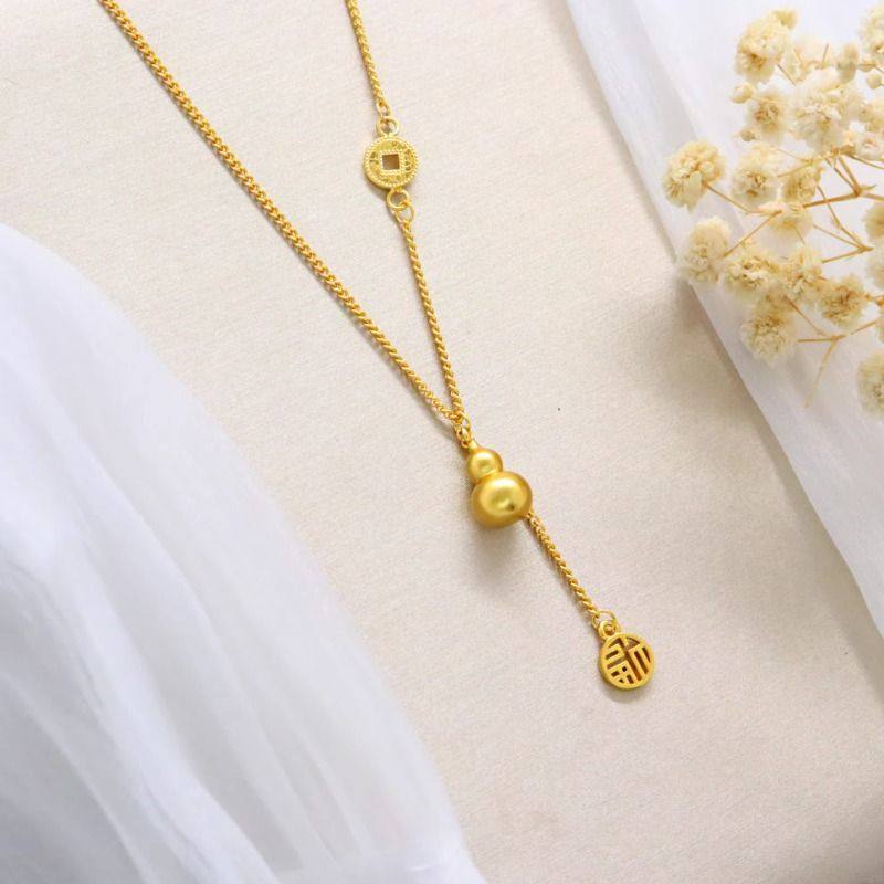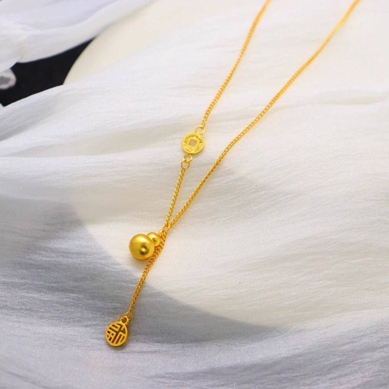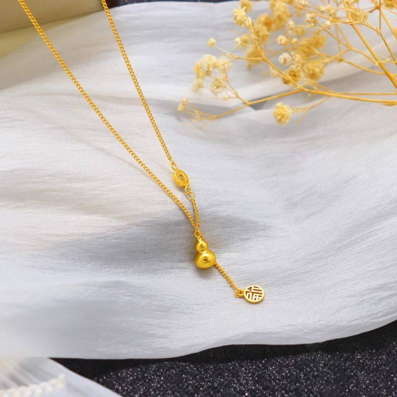 越南沙金项链女葫芦吊坠轻奢小众高级感锁骨链黄金色套链仿真首饰