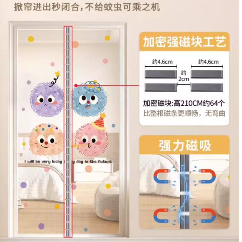 2026卡通防蚊门帘夏季卧室魔术贴免打孔隔断帘子自吸磁吸纱网纱窗