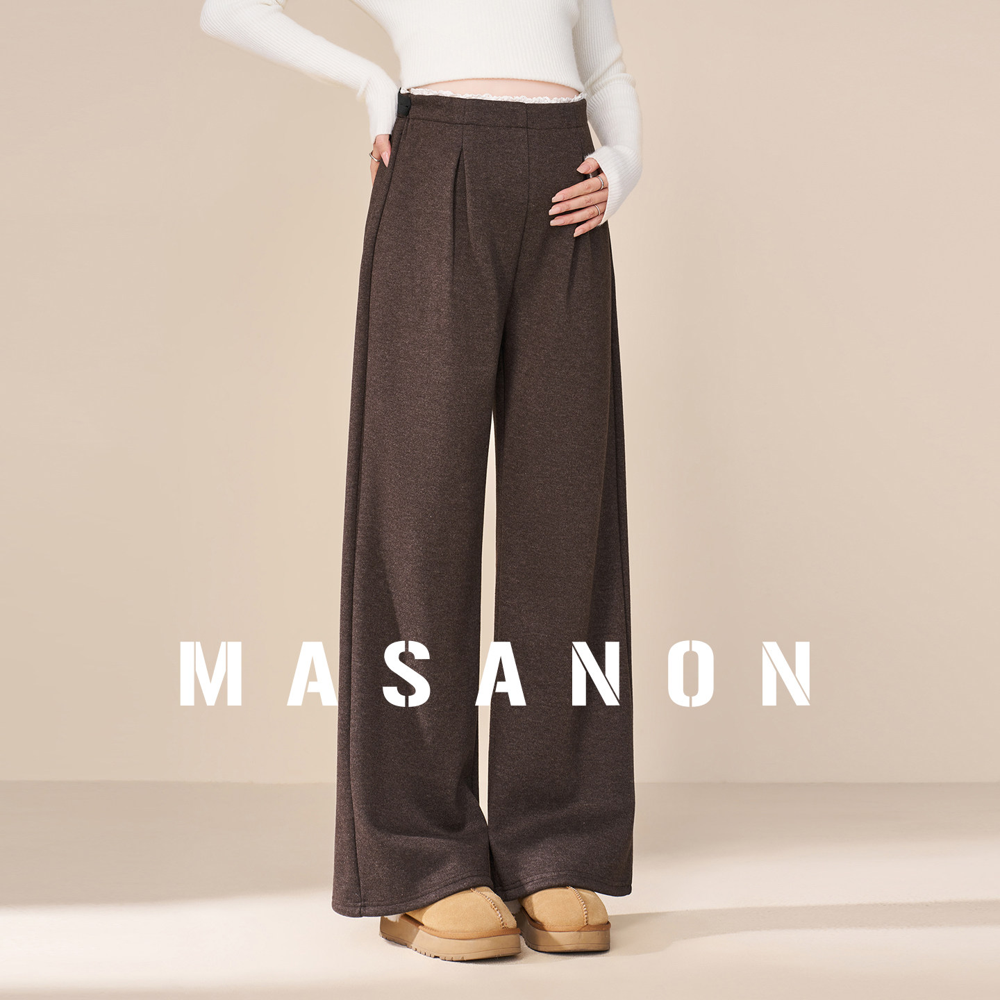 婧麒孕妇裤子秋冬2025新款外穿加绒厚糯米阔腿裤孕期不勒肚子长裤