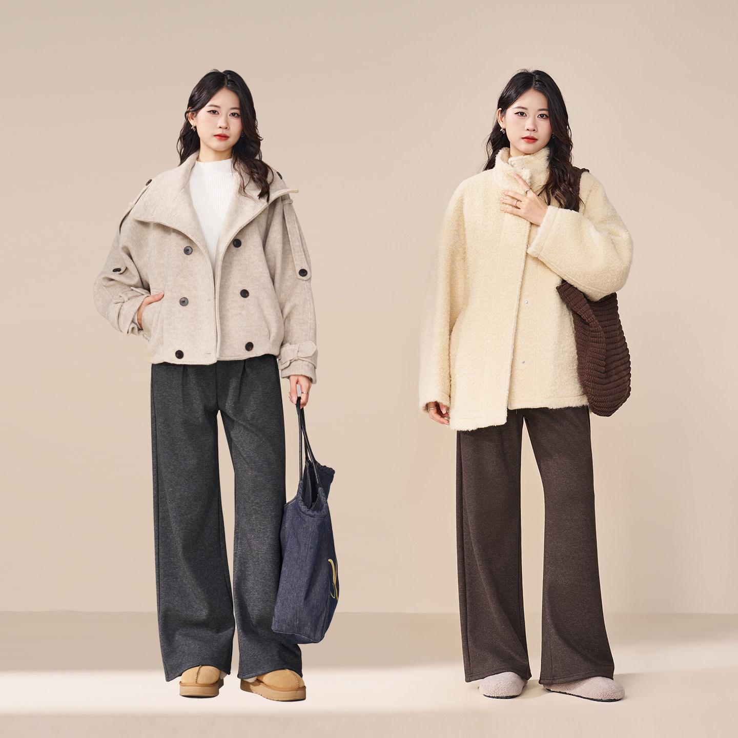 孕妇裤冬季加绒加厚2026新款羊羔绒直筒裤子时尚外穿秋冬款阔腿裤