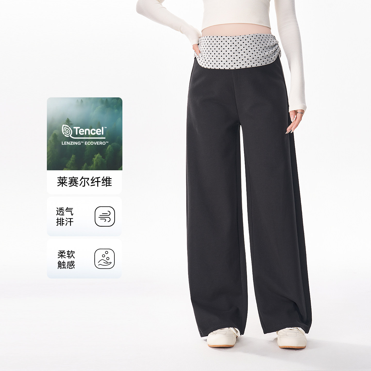 孕妇裤不勒肚子春季外穿2026新款撞色腰头孕妇大码阔腿长裤春秋款