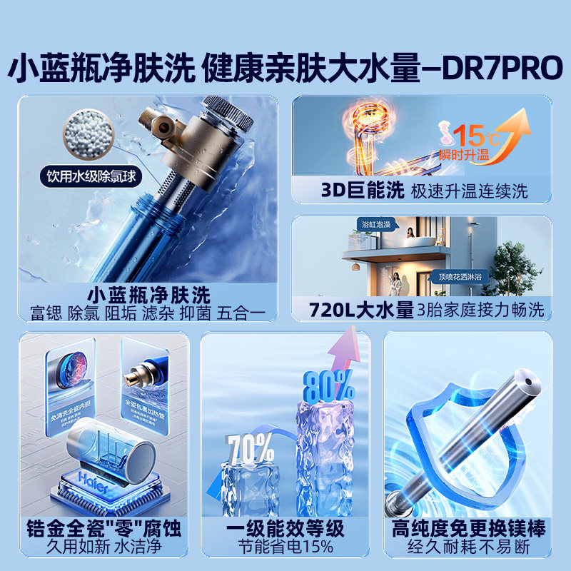 海尔麦浪电热水器家用官方速热卫生间60升一级能效小蓝瓶DR7pro