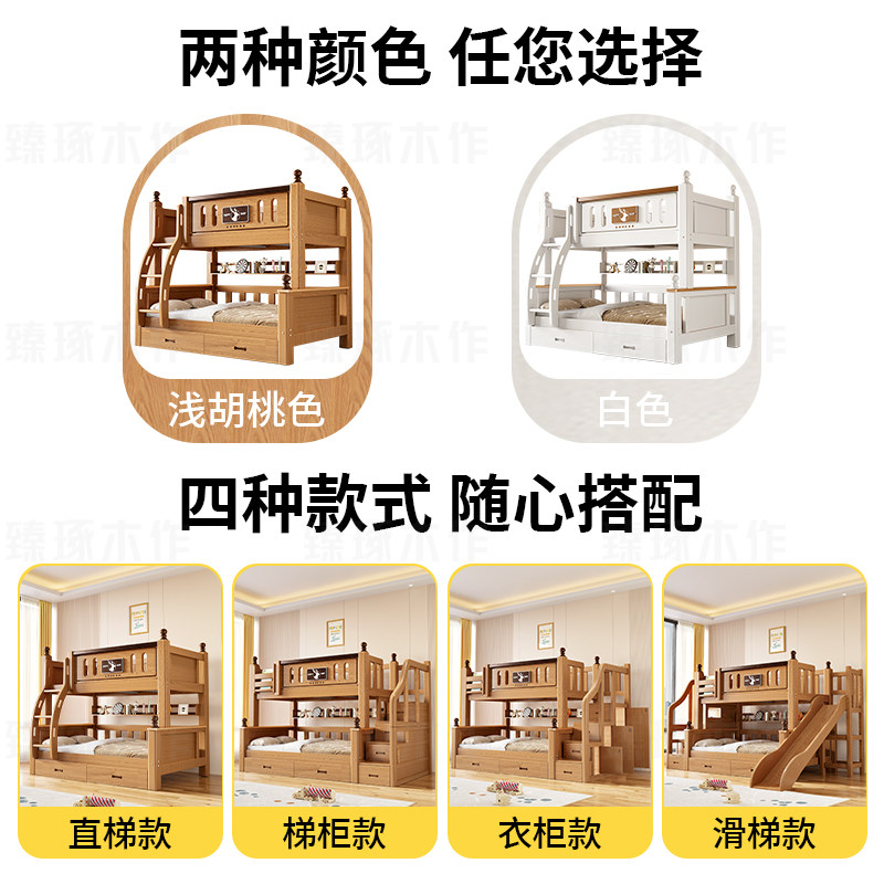 实木床橡木多功能上下床双层床儿童床子母床高低床双人床上下铺床