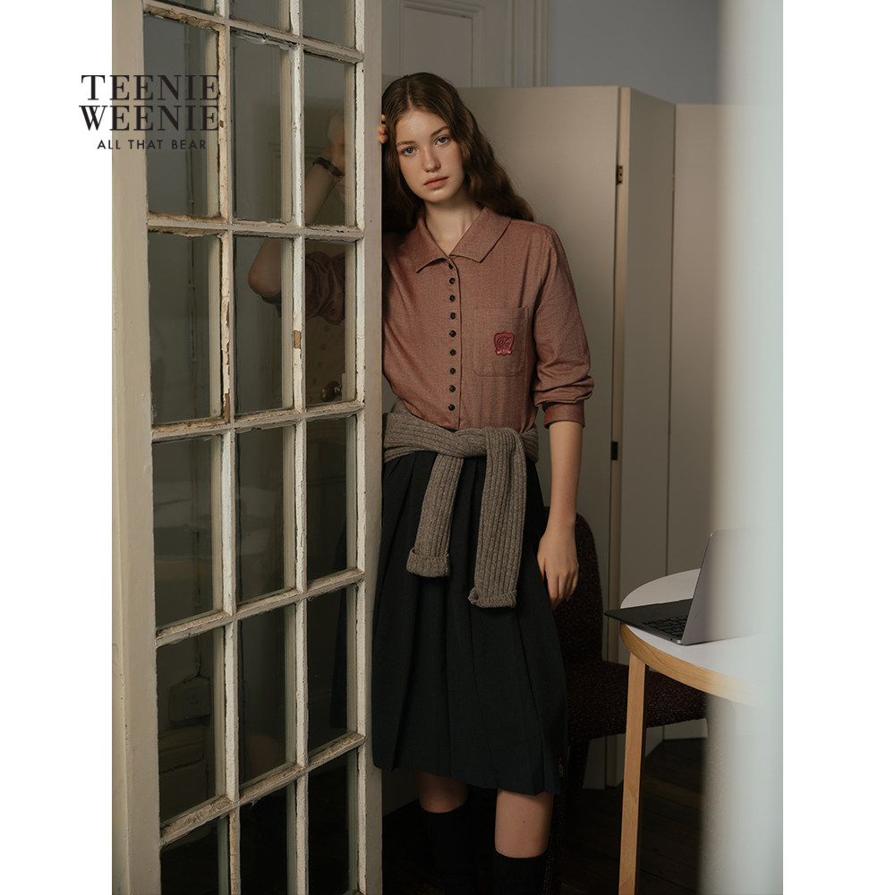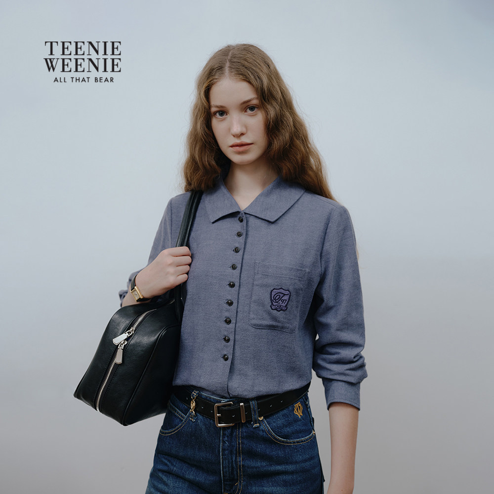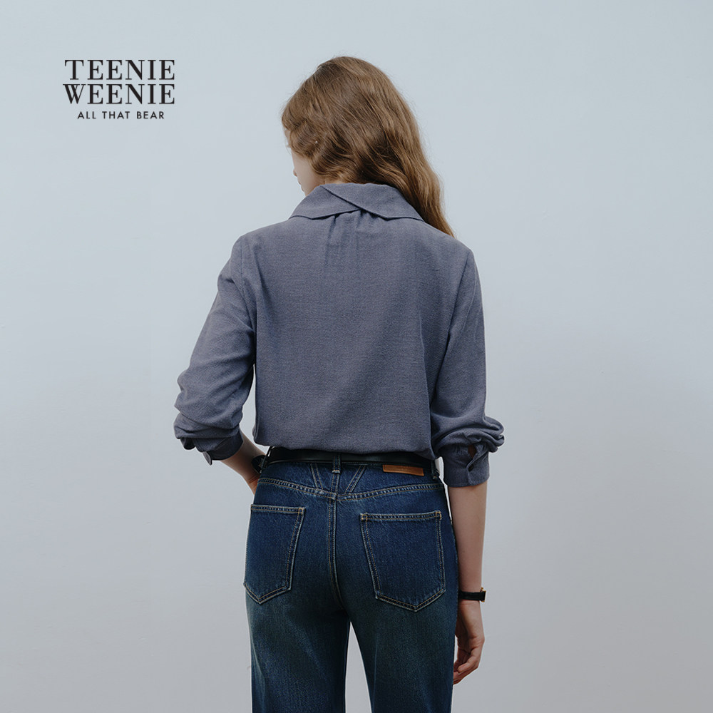 TeenieWeenie小熊女装衬衫秋冬季舒适磨毛仿牛仔感人字纹衬衣上衣