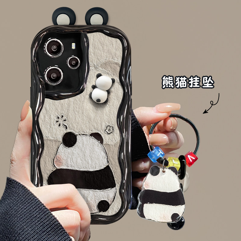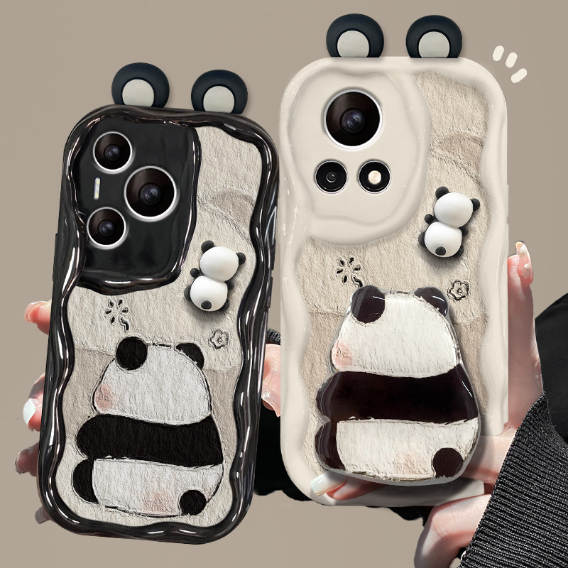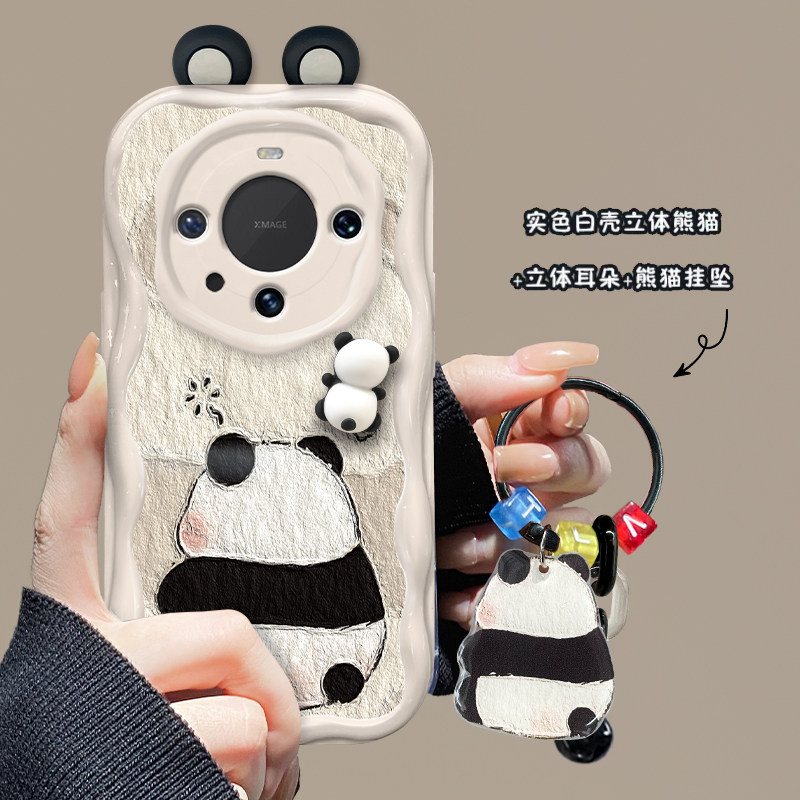 适用华为mate70手机壳pura70pro/50新女款p40/30荣耀200/100奶油纹90卡通熊猫公仔支架nova12/11防摔80保护套