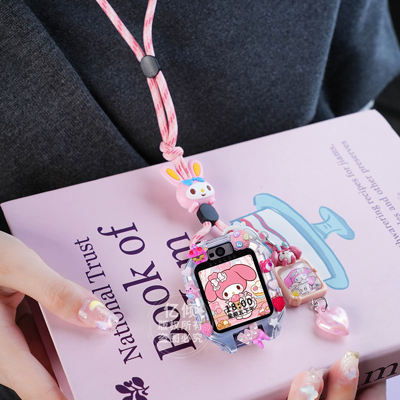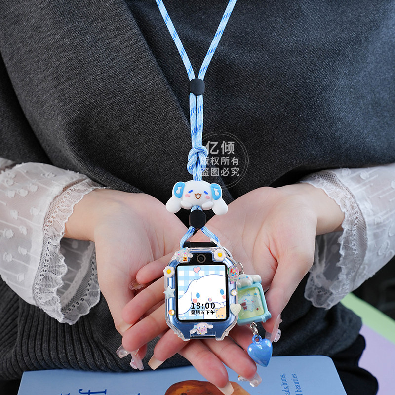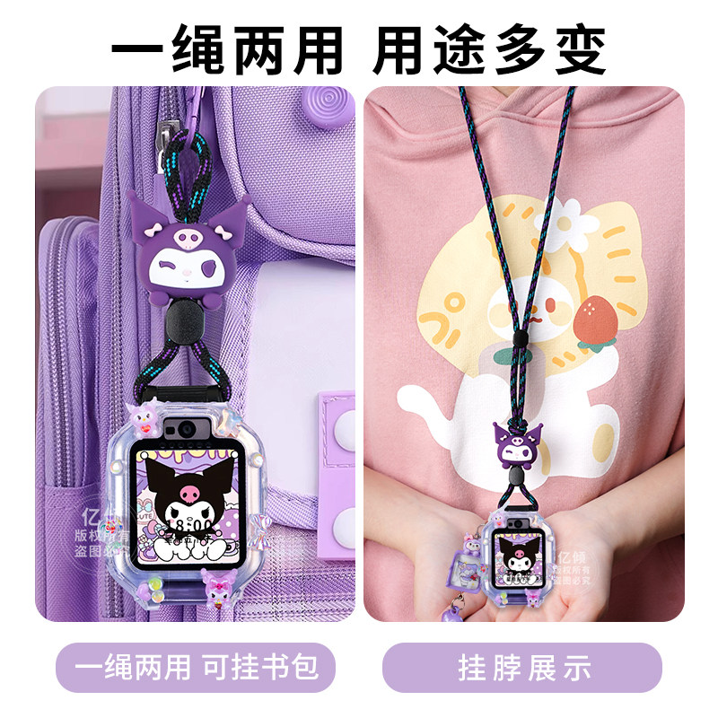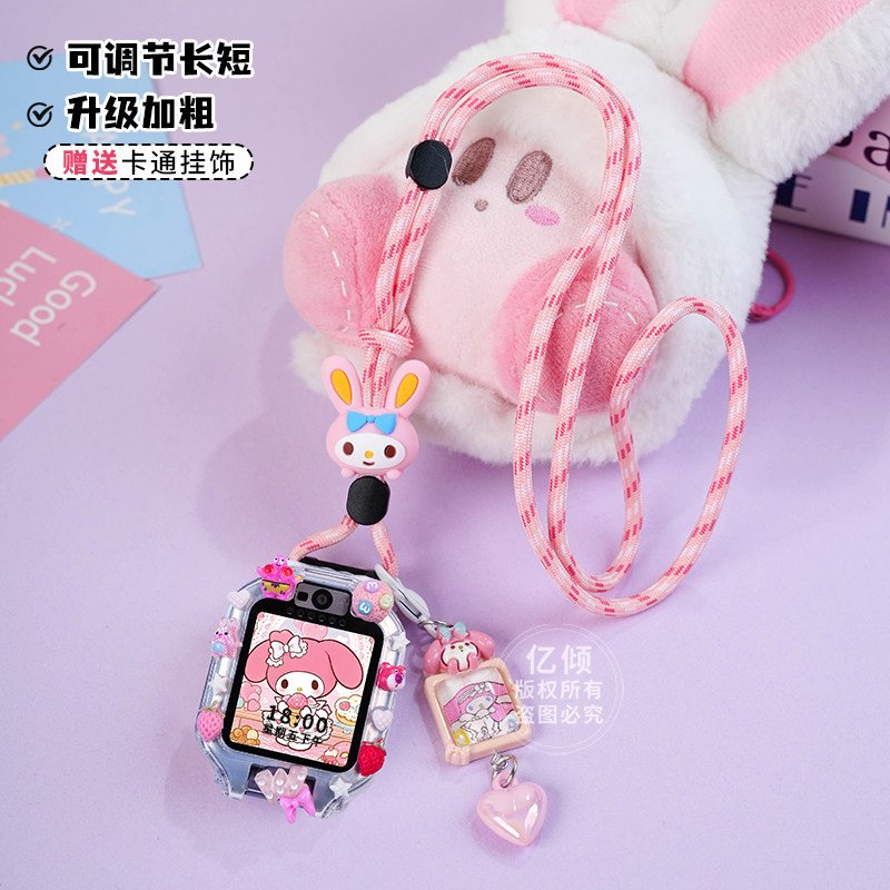 吊坠适用华为儿童电话手表表带5xpro挂脖套3Pro保护壳4X新耀挂绳3S配件55pro通用5X卡通红色尼龙紫色粉色蓝色