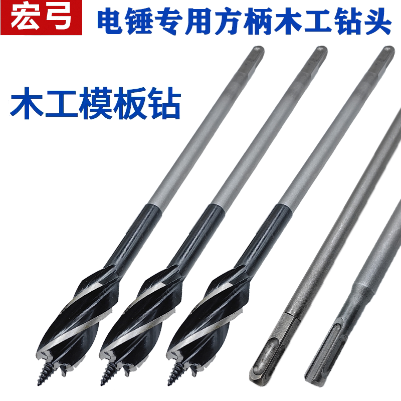 电锤木工钻头方柄四坑加长四槽钻圆柄俩槽支罗钻木工打孔麻花钻头