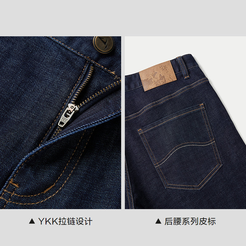 吉普专柜秋冬季新款复古牛仔裤男宽松直筒大码加绒加厚水洗长裤子