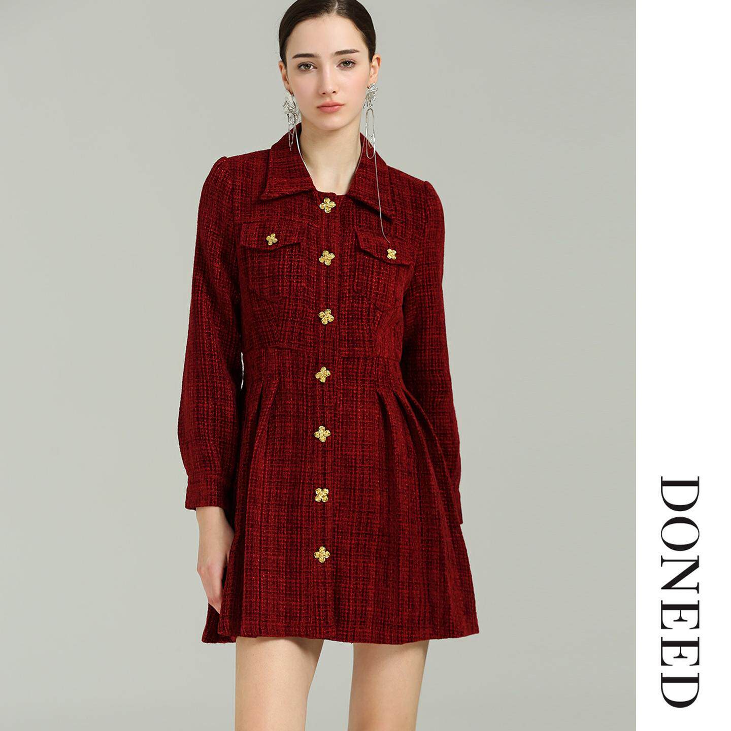 DONEED2026春季新款法式小香风轻奢高级感收腰显瘦连衣裙女