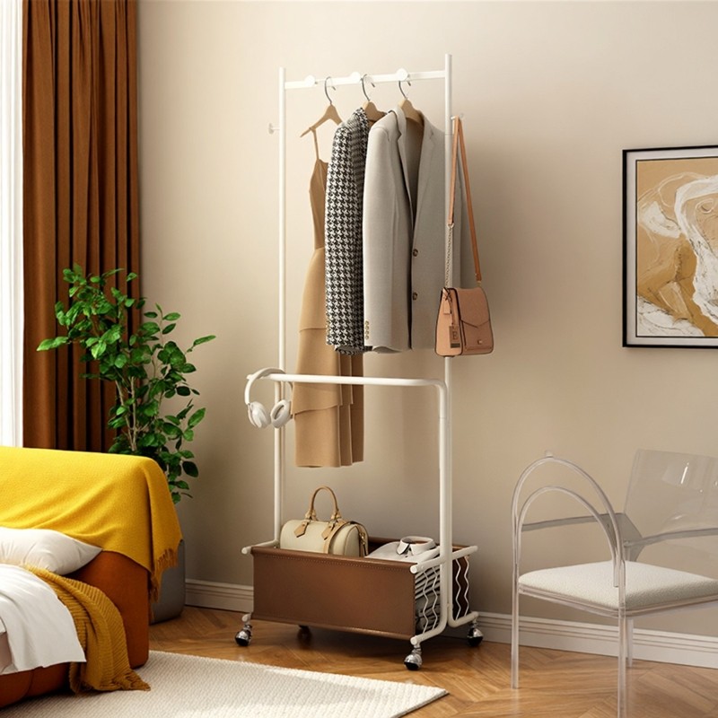 衣架落地卧室奶油风挂衣架家用铁艺简易晾衣架室内客厅移动衣帽架