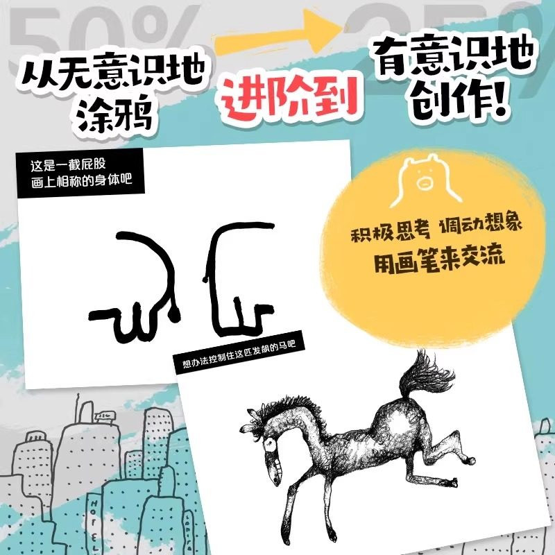 我的创意绘本五漫画五味太郎画一半你画正版思维游戏书3-4-5到6-7-8岁以上幼儿园大中小班阅读启蒙和大书细致涂色艺术