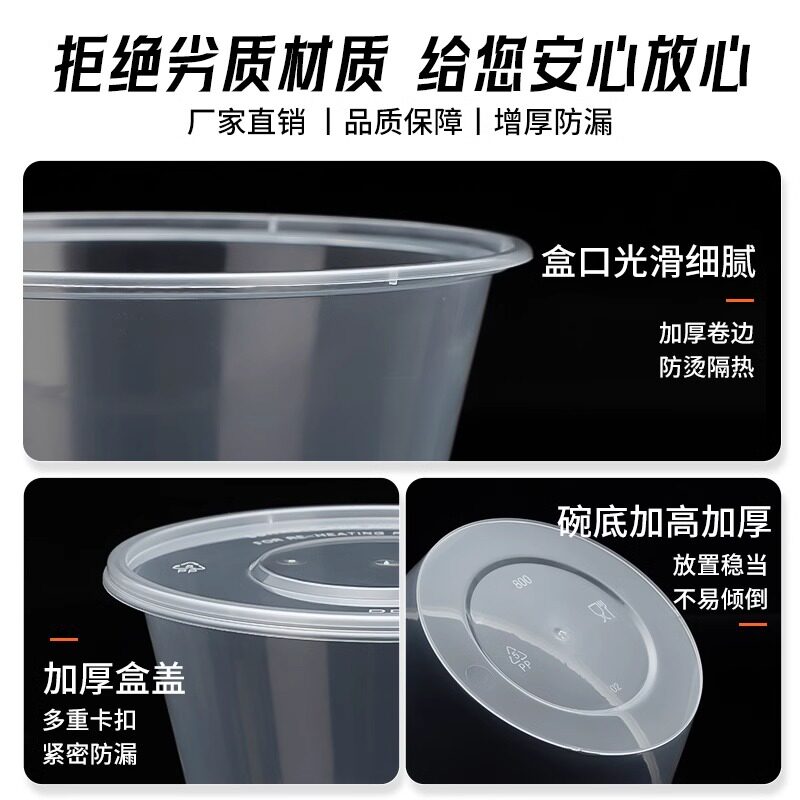 一次性碗塑料碗快餐汤碗家用外卖打包盒圆形透明饭盒加厚食品无盖