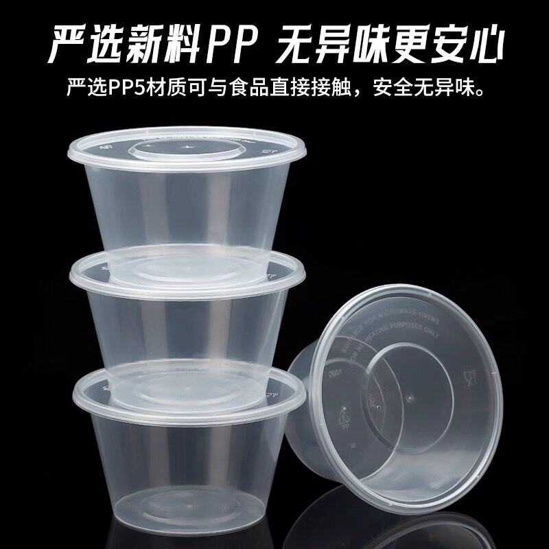 1000ml一次性餐盒打包盒圆形塑料饭盒耐高温加厚食品级汤碗外卖