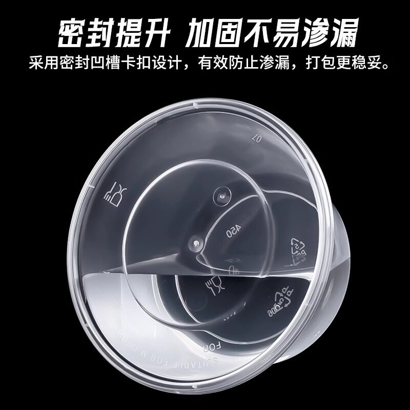 加厚一次性打包盒食品级商用1250/1500圆形带盖透明餐盒外卖饭盒