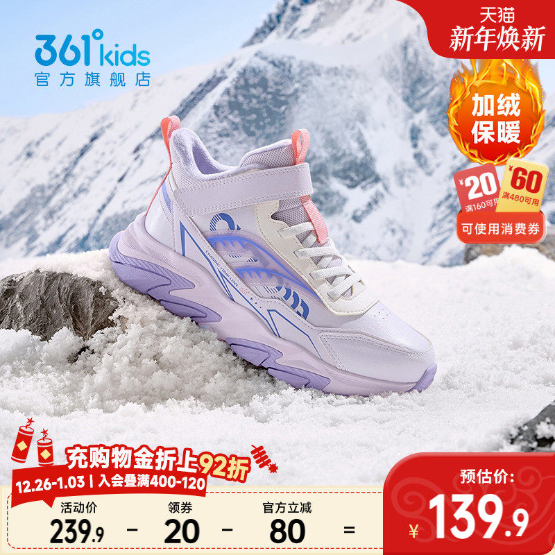 361°童鞋女童棉鞋儿童二棉鞋保暖加绒2025年冬季新款户外大童鞋