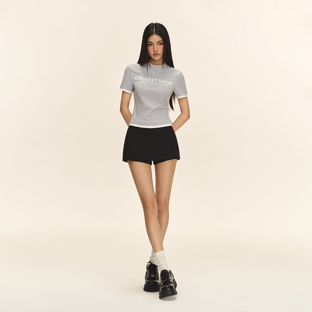 CLIMAX VISION垂顺光滑高腰显瘦一片式A字西装裙裤短裤半身短裙
