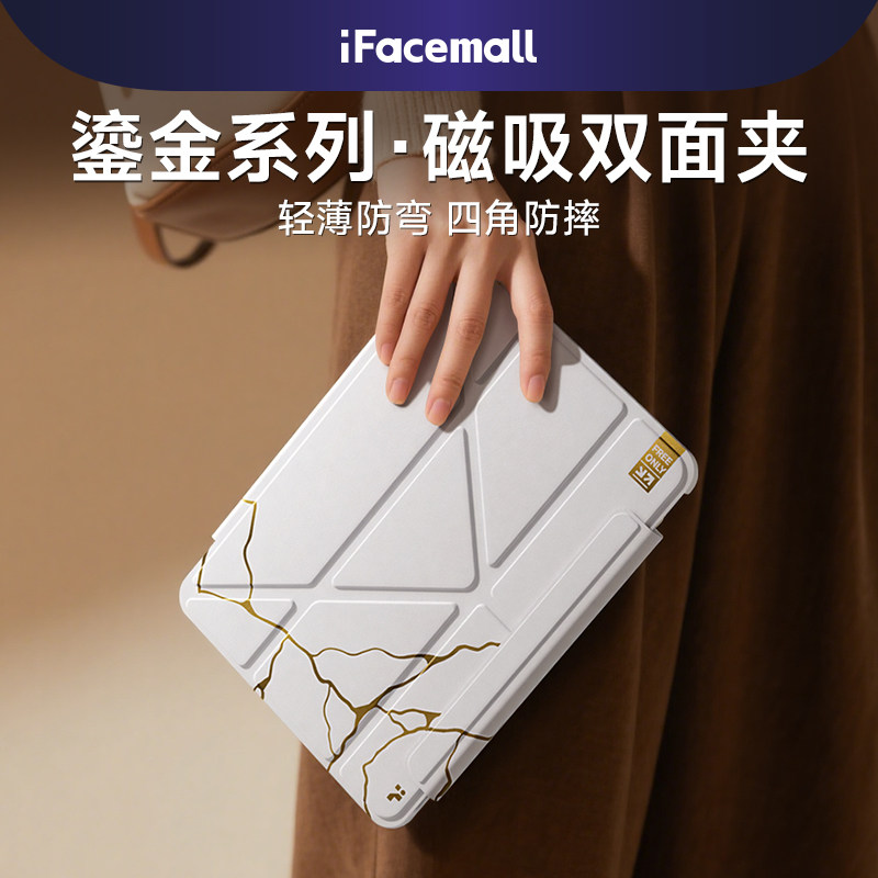 【鎏金系列】iFacemall新款磁吸双面夹适用苹果平板ipad11保护套air7一体10代9轻薄pro13寸硬壳9带5搭扣mini6