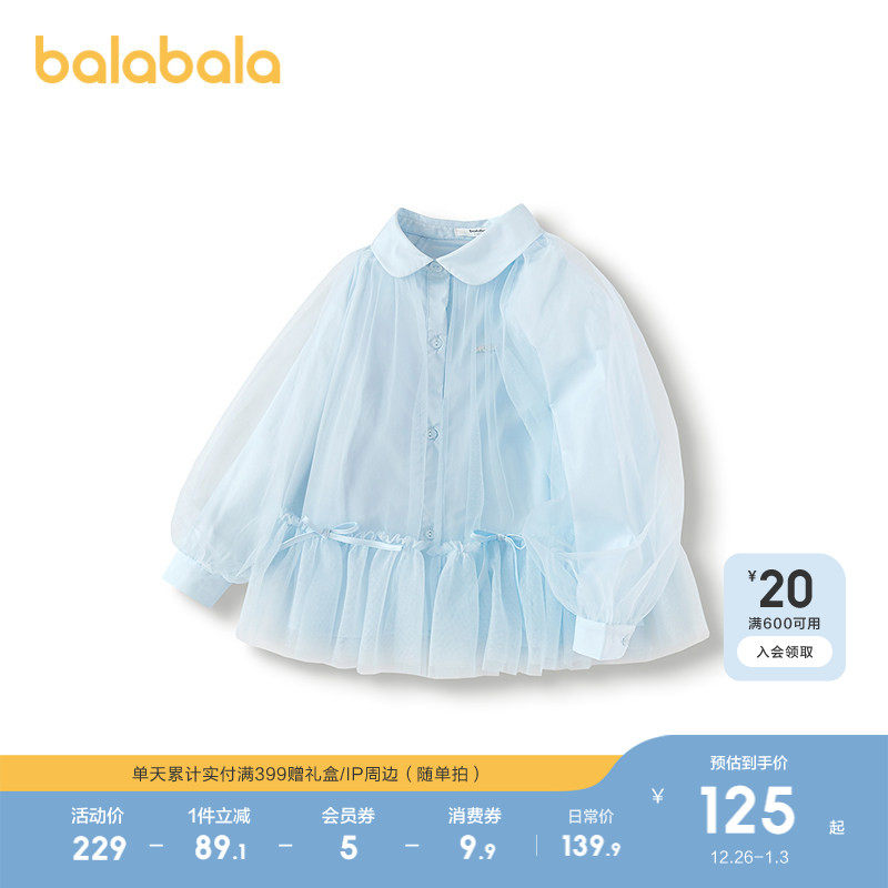 巴拉巴拉童装女童长袖衬衫儿童上衣2025秋装新款网纱衬衣甜美百搭