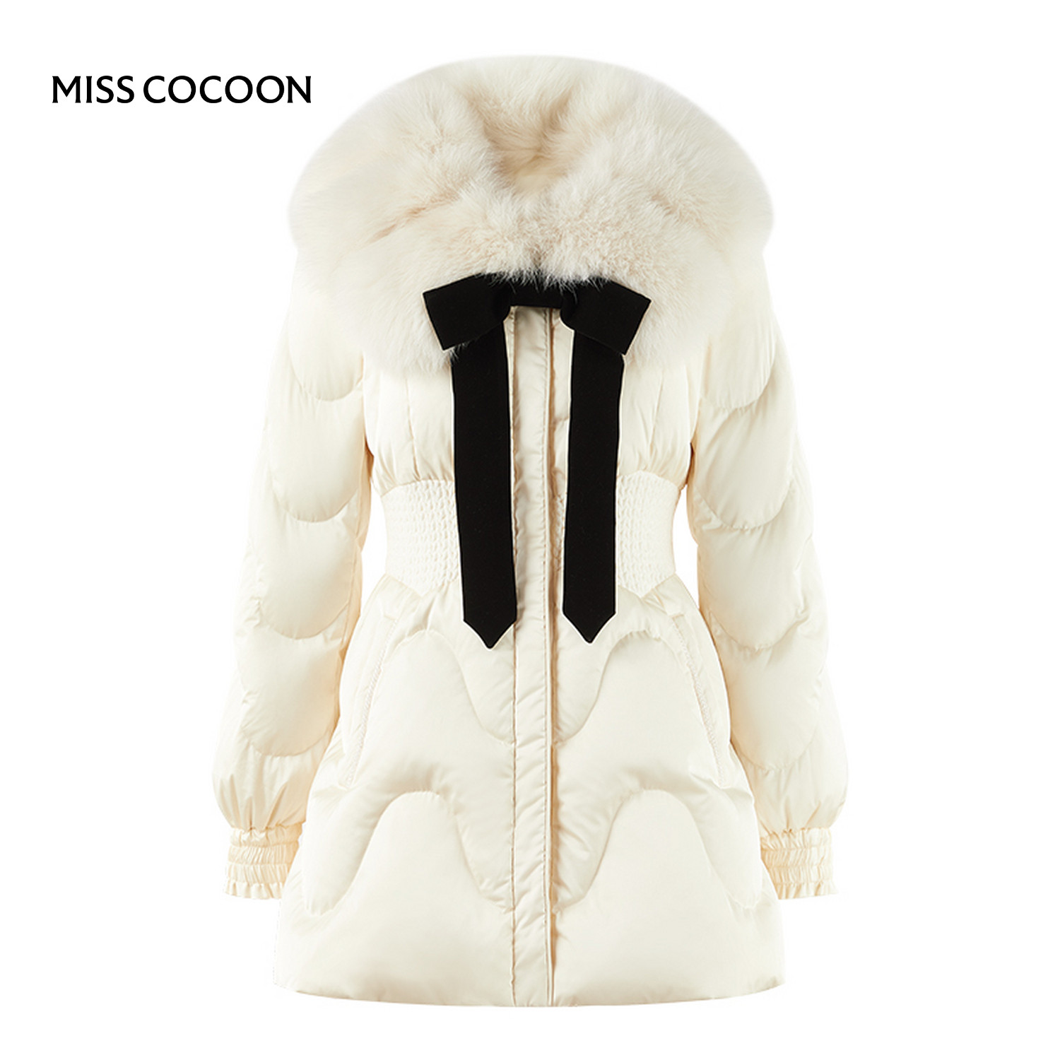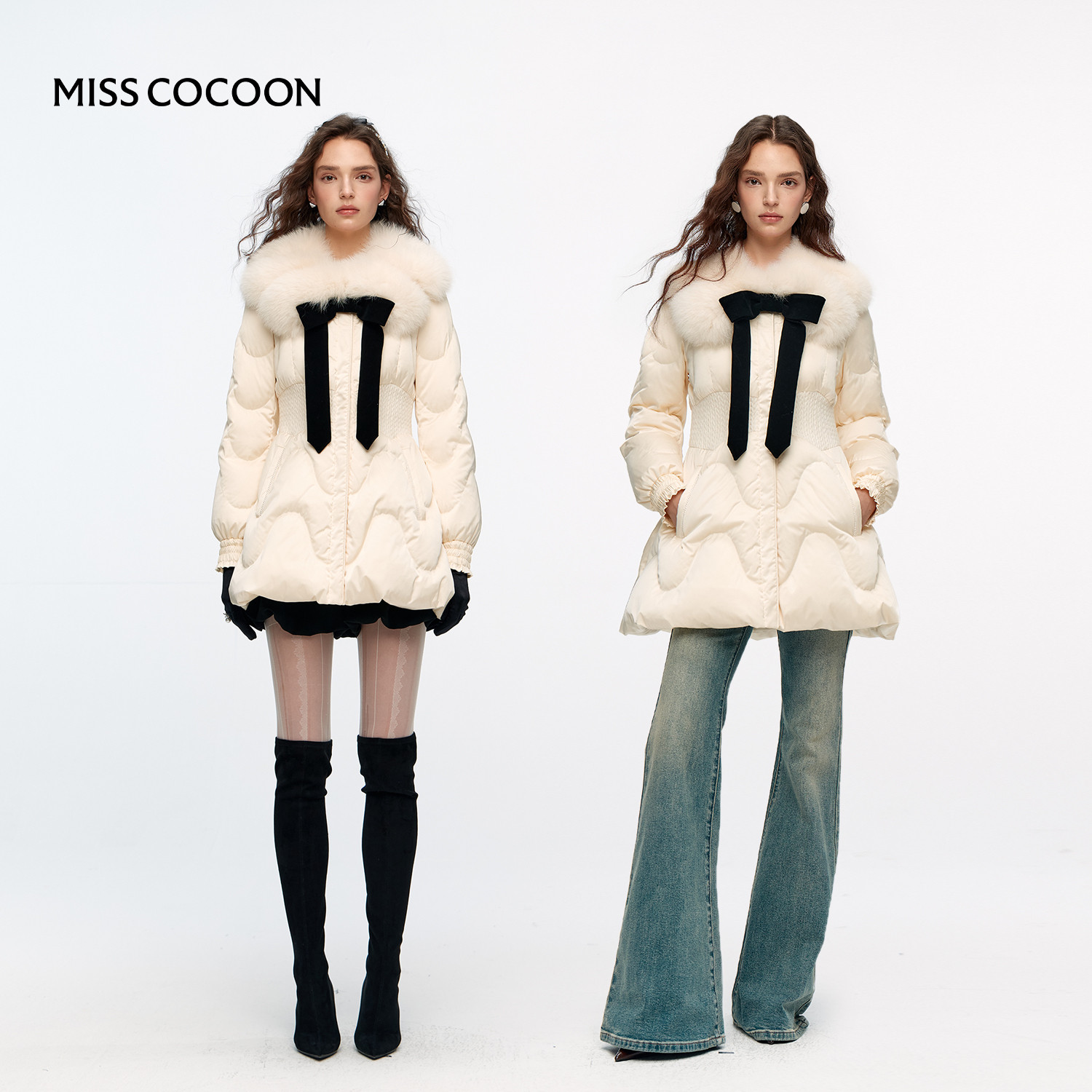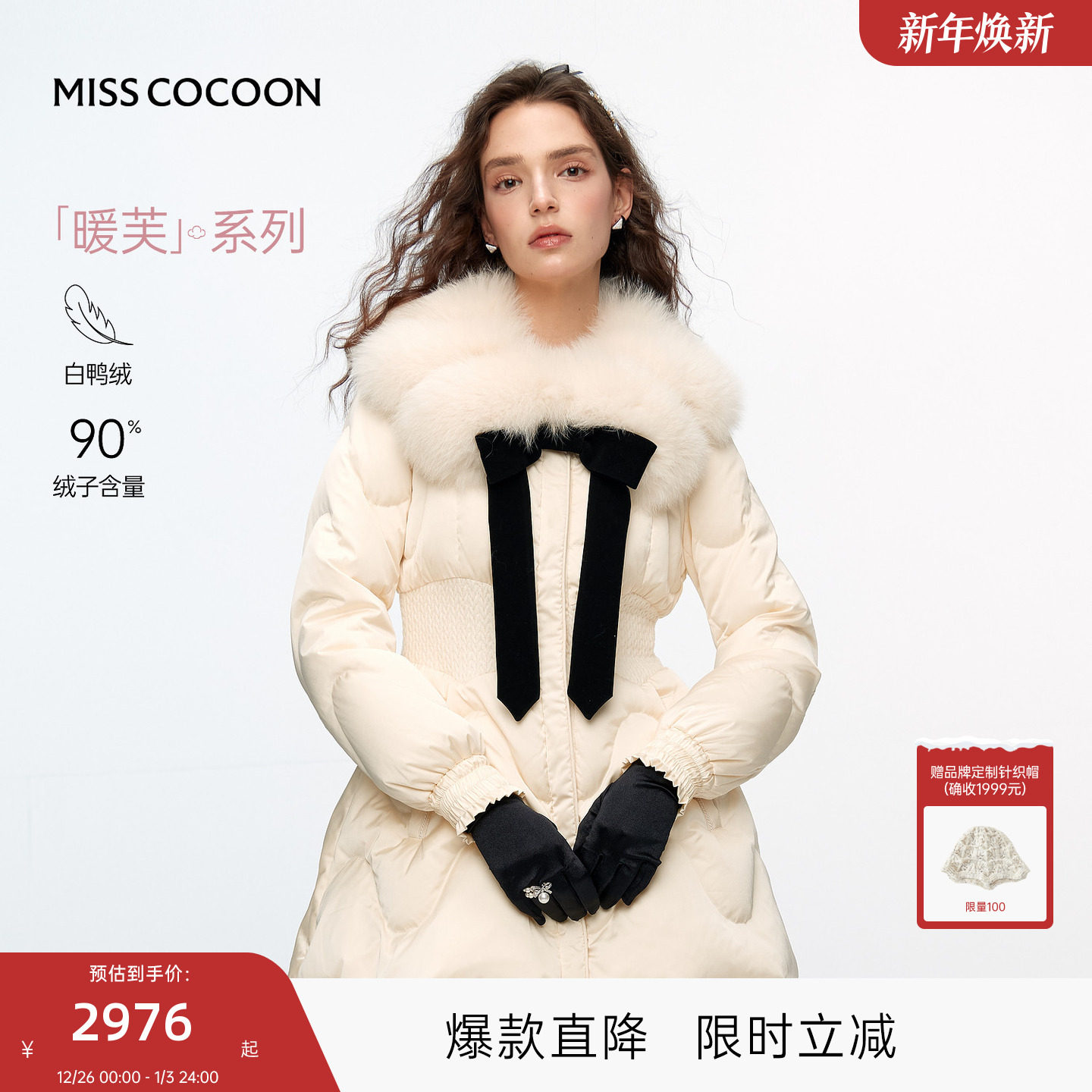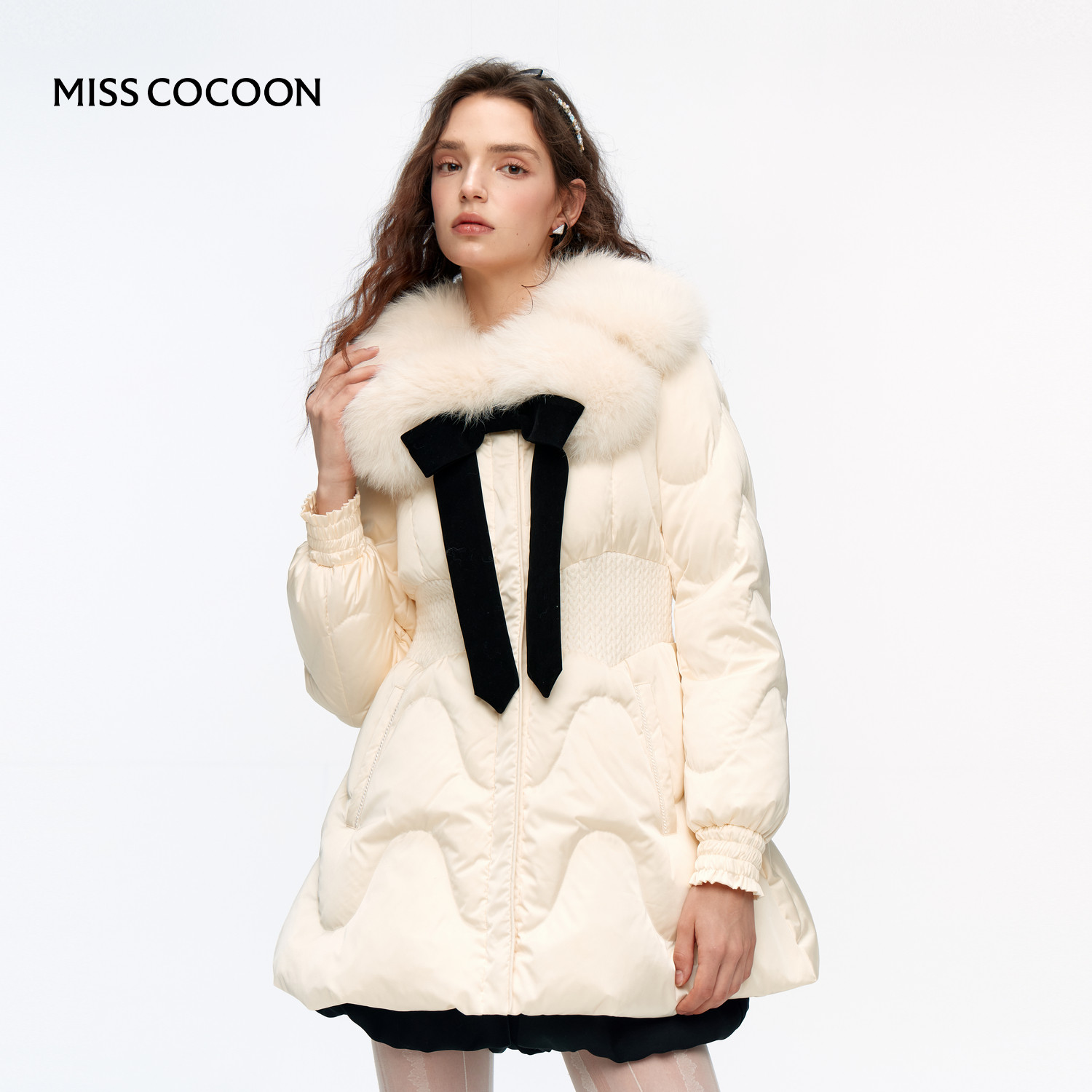 MISSCOCOON可可尼收腰2025冬季新款千金风狐狸大毛领鸭绒羽绒服女