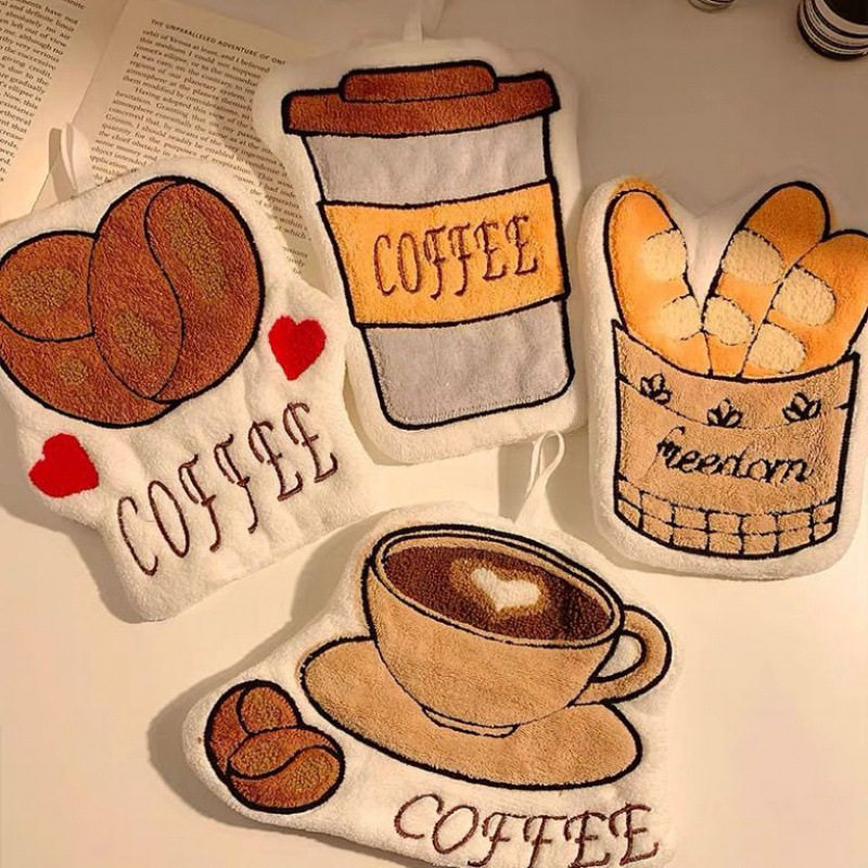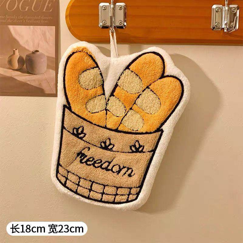 法式面包可爱擦手巾挂式珊瑚绒吸水不掉毛家用手帕毛巾抹布咖啡