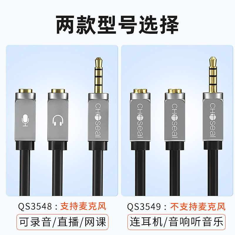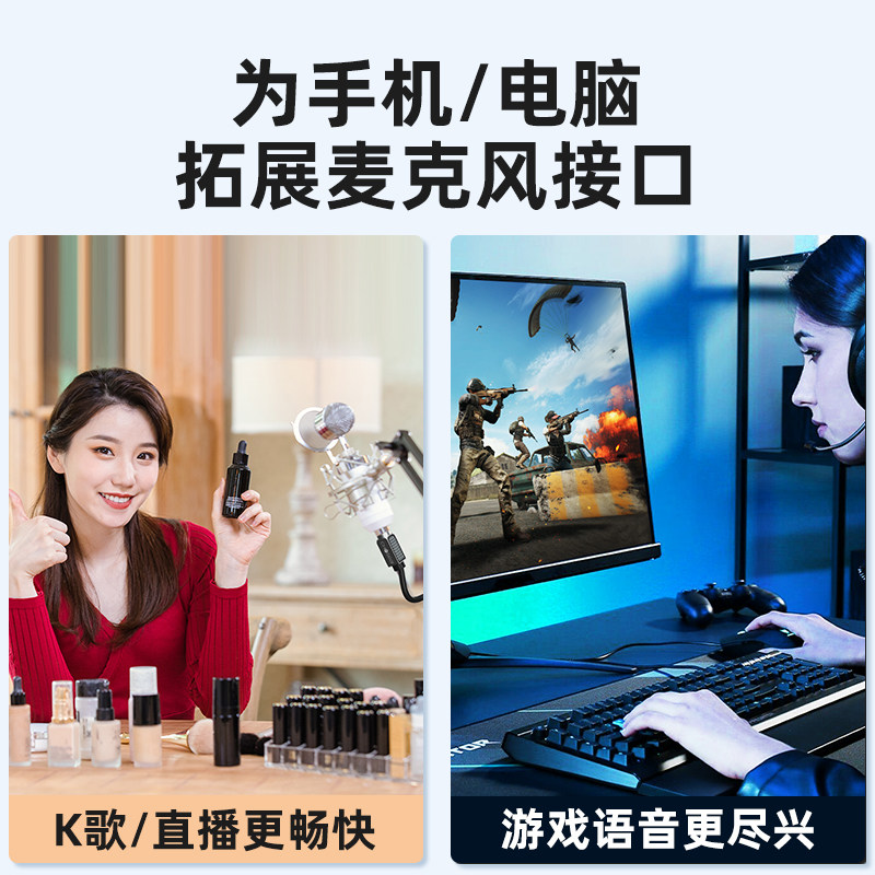 秋叶原电脑耳机转接头麦克风二合一音频线一分二话筒3.5mm笔记本耳麦手机转换器插头分线器