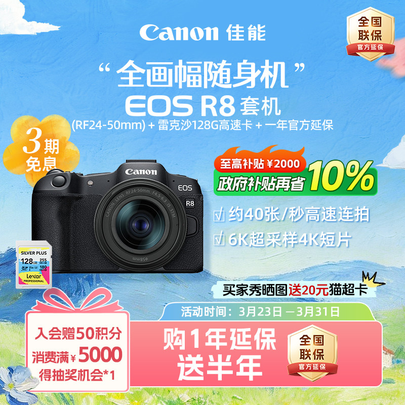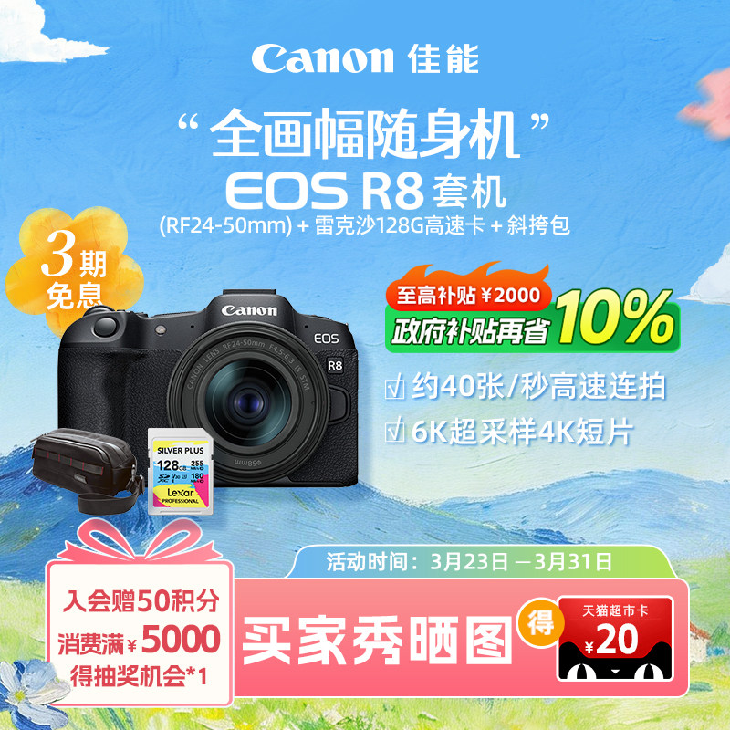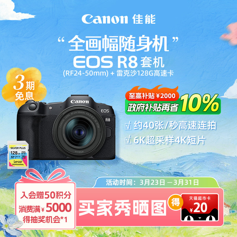 [旗舰店]Canon/佳能EOS R8机身/套机 全画幅专业微单高速连拍相机