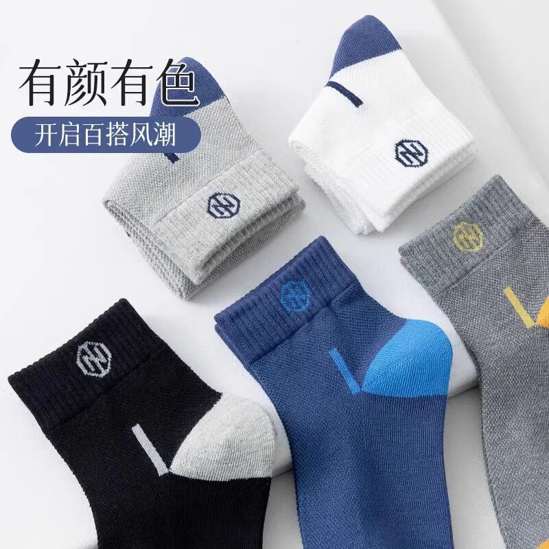 网眼运动防臭袜子男款纯色棉短筒袜春夏季薄款透气男士夏天中筒袜