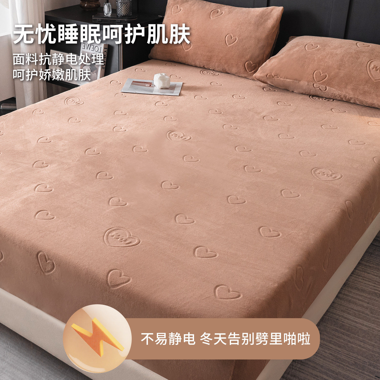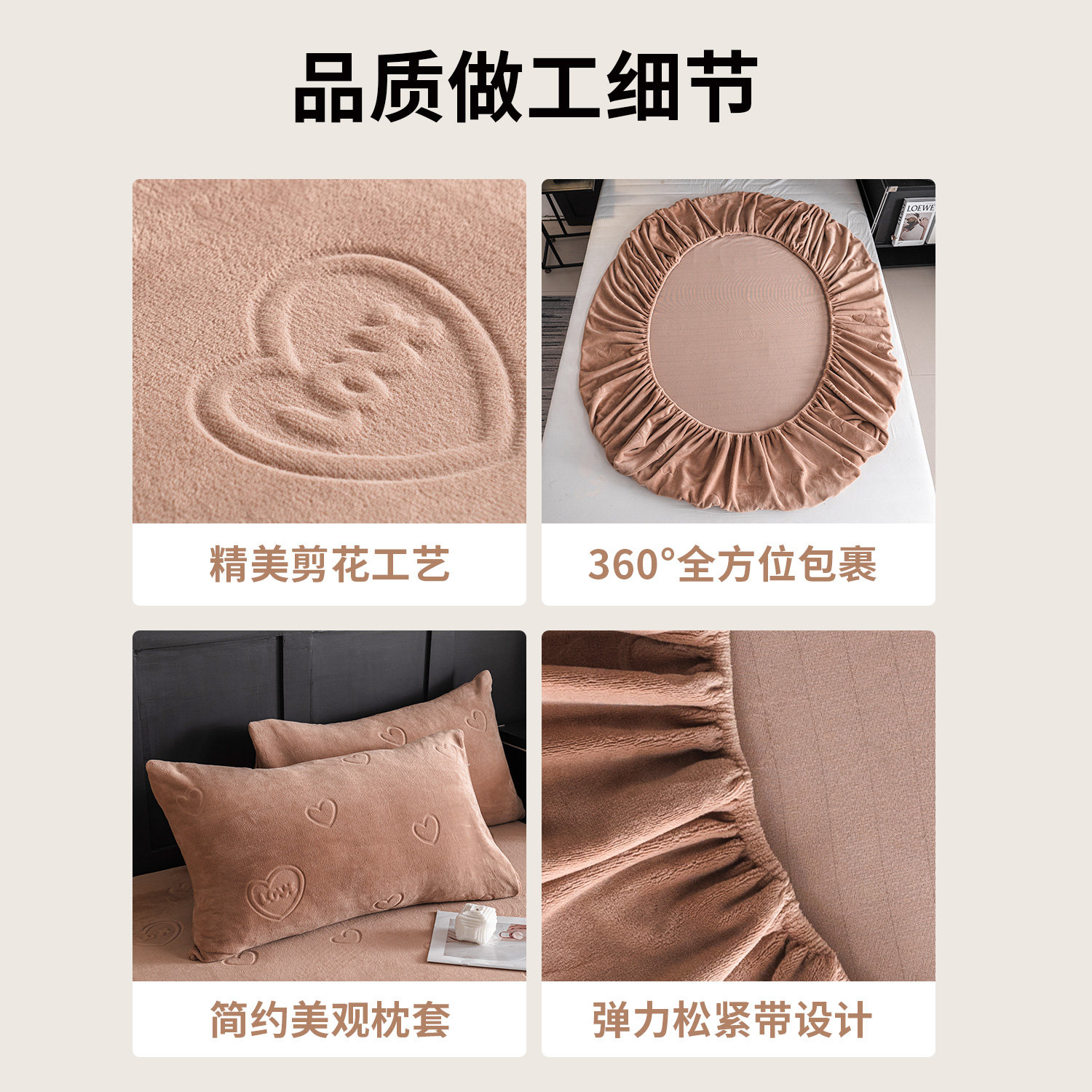 加厚速暖牛奶绒床笠2025新款珊瑚绒三件套秋冬纯色床单床褥垫保护