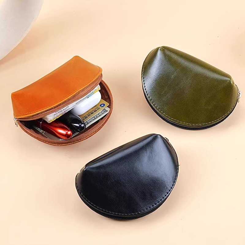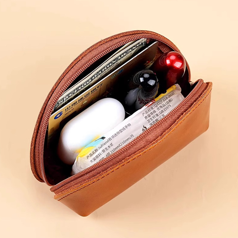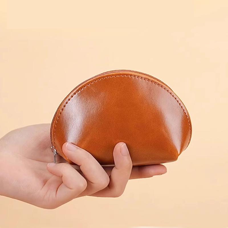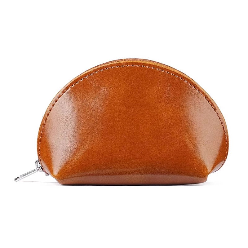 复古油蜡皮小钱包女款简约迷你贝壳形实用耳机硬币口红钥匙收纳包