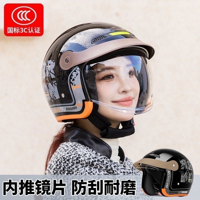 新国标3c认证电动车头盔电瓶摩托车安全帽夏季半盔四季通用镜片