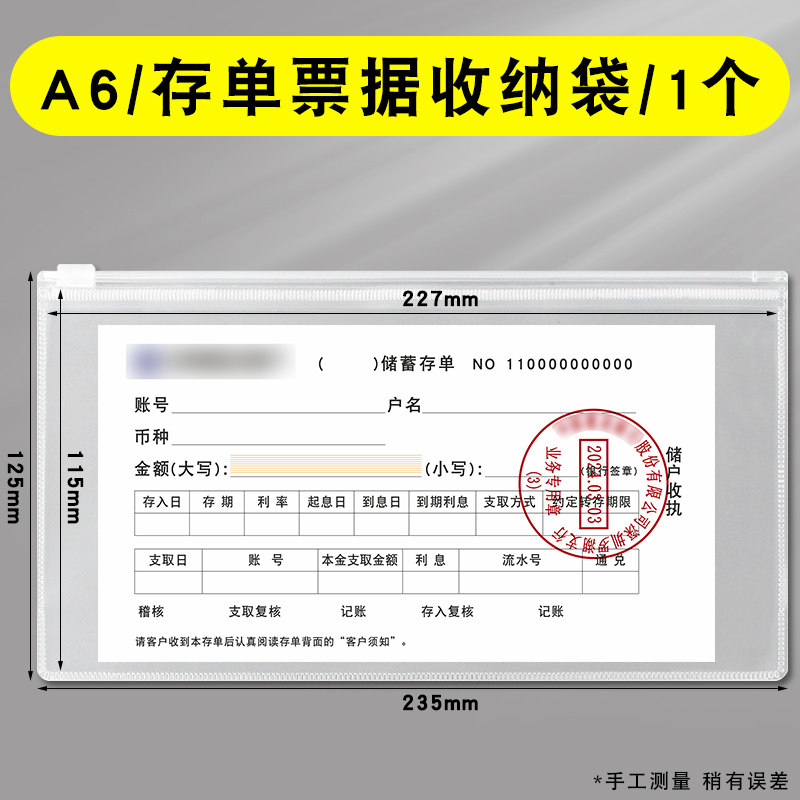 多用途票据存单夹装王储存款夹拉链放定期专用夹子家用本子保护袋子纸质支票卡包透明袋存放存折收纳本卡套储